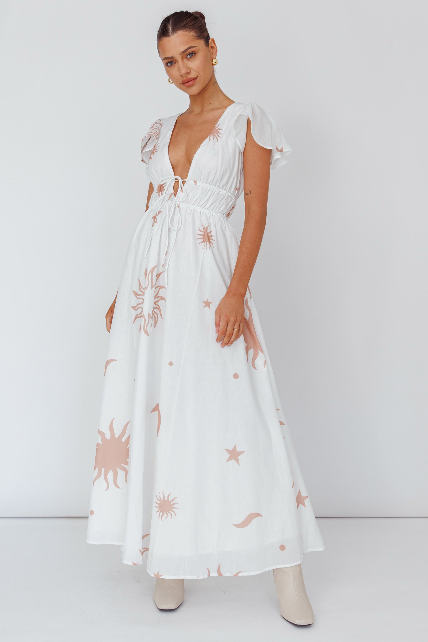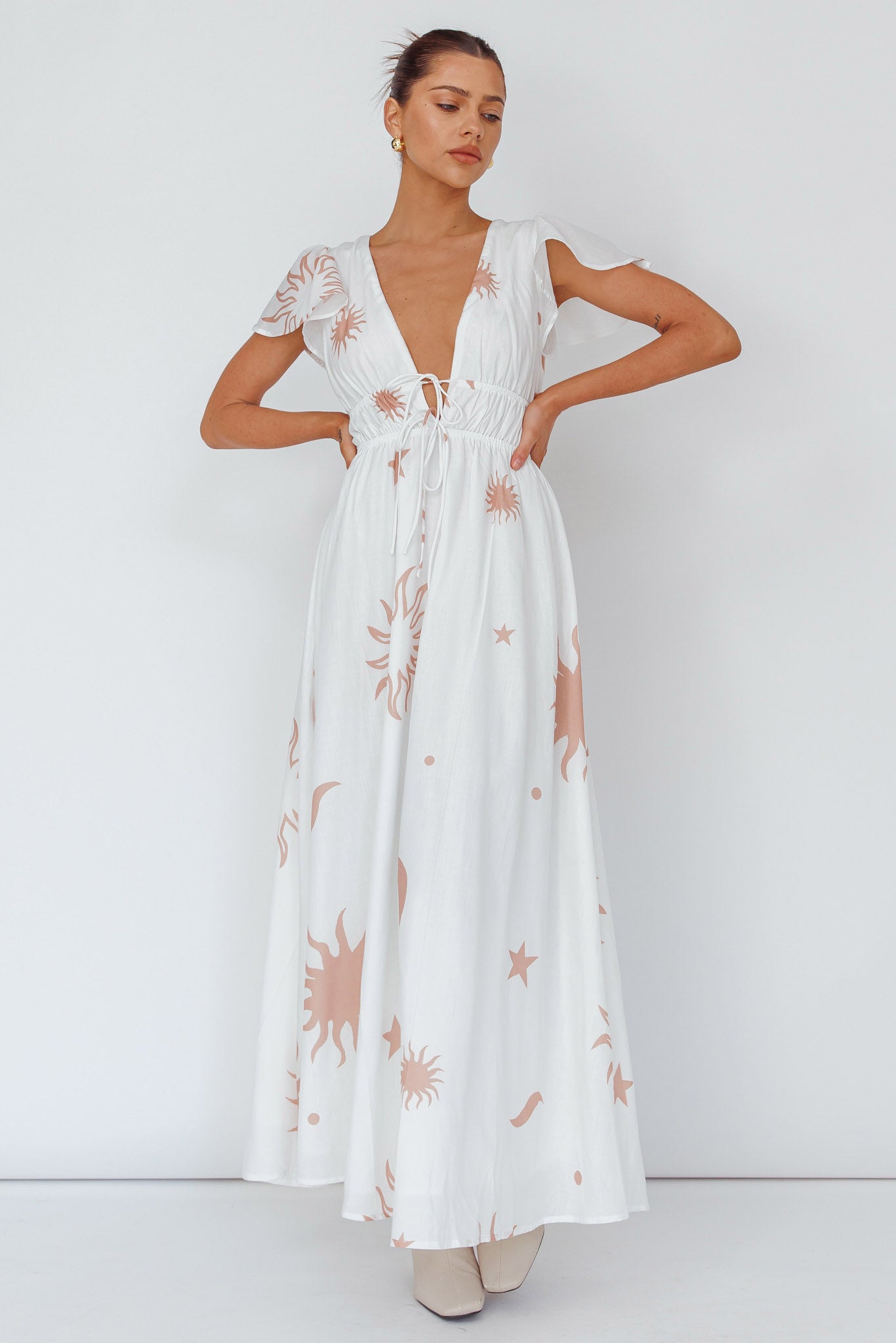 Carnivale Angel Sleeve Maxi Dress White/Beige