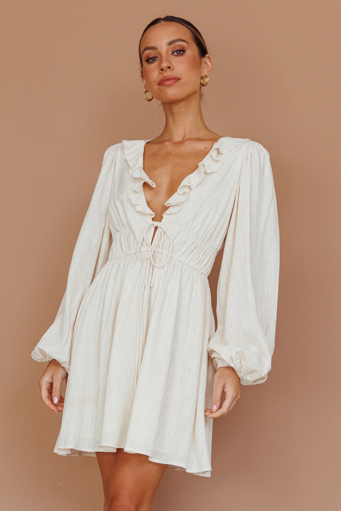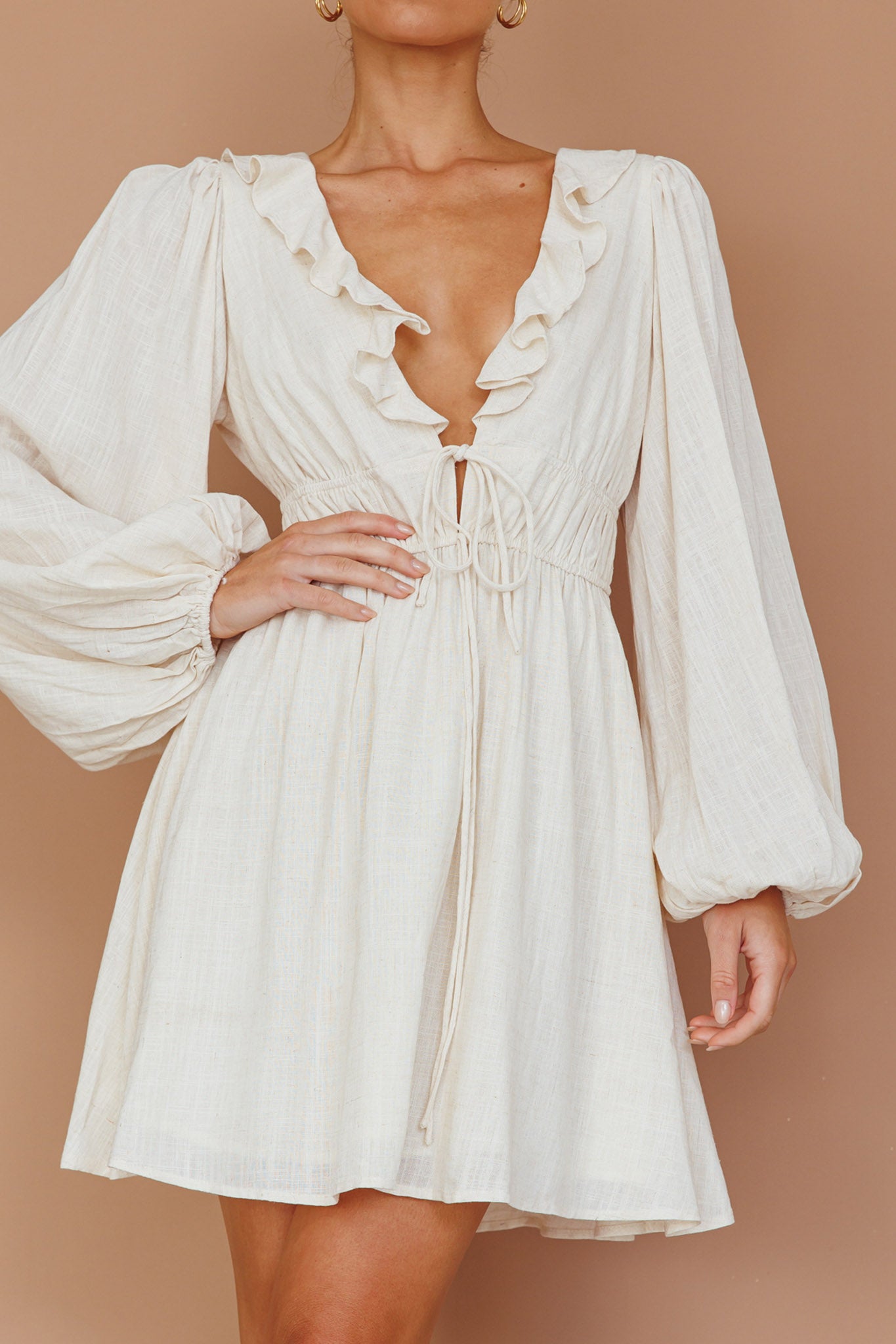 Carnivale Balloon Sleeve Ruffle Mini Dress Oat