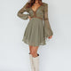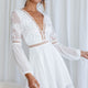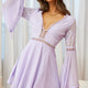 Feminine and fun, Carson is a free spirit who likes road trips to the dessert, singing Britney's greatest hits at the top of her lungs. Channel those boho vibes in our super cute Carson dress featuring pretty crochet work throughout the torso and around the elbows and a breezy A-Line skirt. We're loving the on-trend bell sleeves with a drawstring tie around the wrist and deep V back that string-ties together at the top. Pair it with tan cowboy boots and a felt hat.