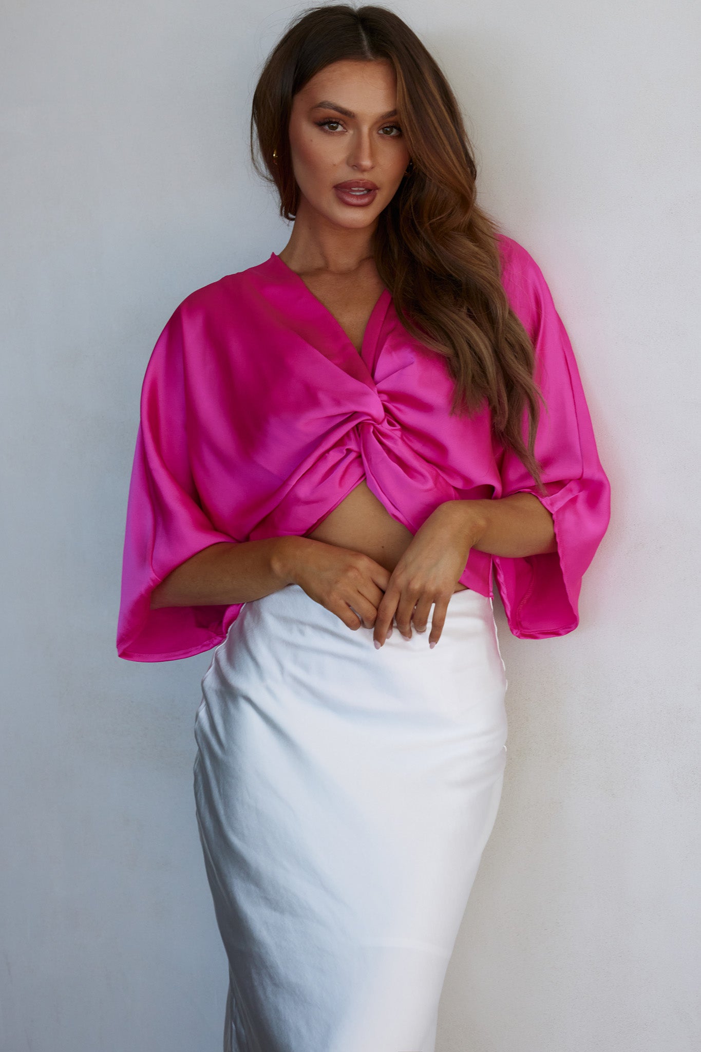 Steal the show in our gorgeous Casablanca top. Featuring a twist accent in the bust and relaxed fit. Perfect for a chic girls' night out. Team it with a satin midi skirt for an on-trend look.