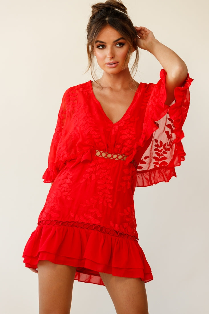 One of our most popular styles, the Caspar dress is elegant and versatile, easily going from work to sunset cocktails with the gals after work. We love its batwing style sleeves, with pretty ruffle trim and eyelet embroidery around the waist that's also repeated around the skirt's hem. Pair it with nude heels and fine gold jewelry for a feminine-chic look we are loving.