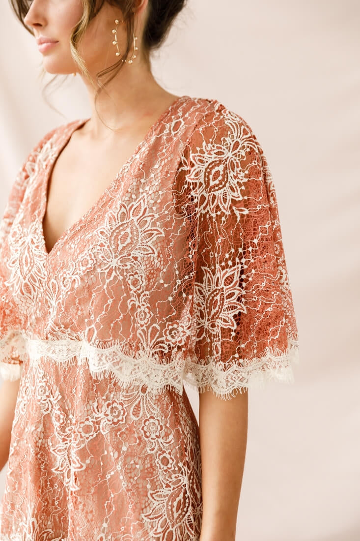 One of our most popular styles, the Caspar dress is elegant and versatile, easily going from work to sunset cocktails with the gals after work. We love its batwing style sleeves, with its pretty scalloped trim that's continued around the waist and repeated around the skirt's hem. Pair it with nude heels and fine gold jewelry for a feminine-chic look we are loving.
