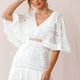 One of our most popular styles, the Caspar dress is elegant and versatile, easily going from work to sunset cocktails with the gals after work. We love its batwing style sleeves, with pretty ruffle trim and eyelet embroidery around the waist that's also repeated around the skirt's hem. Pair it with nude heels and fine gold jewelry for a feminine-chic look we are loving.