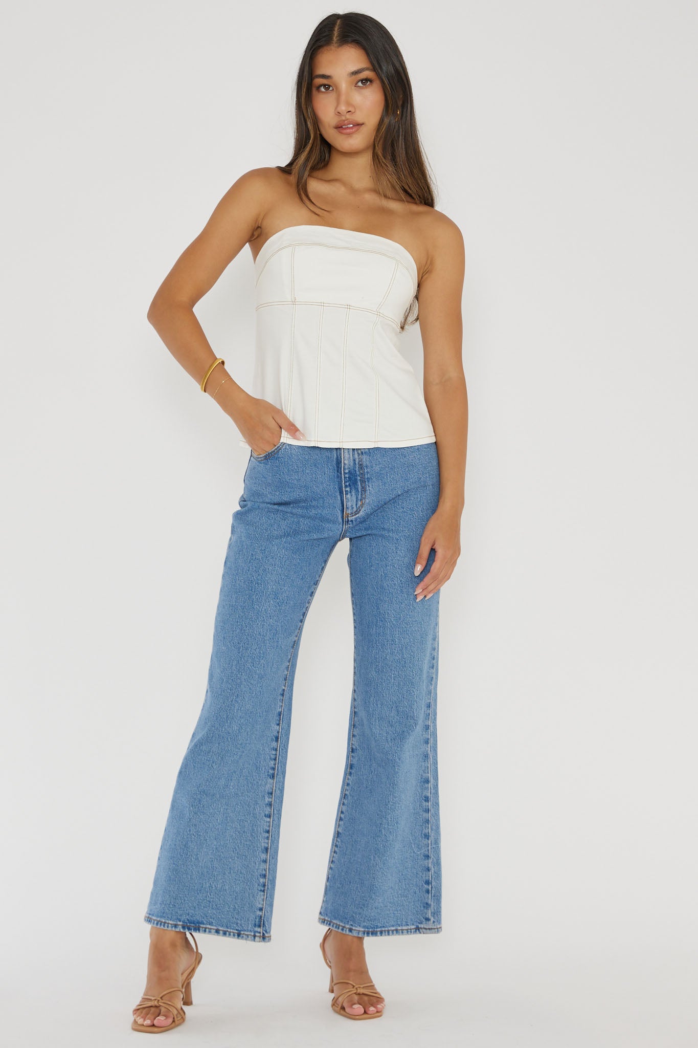 Hey there, cutie! You will be getting all the attention in our adorable Cathlin top. It features contrast stitching and a strapless design. Perfect for a flirty date or a girls' night out, teamed with your fave jeans and mules for a head-turning look.