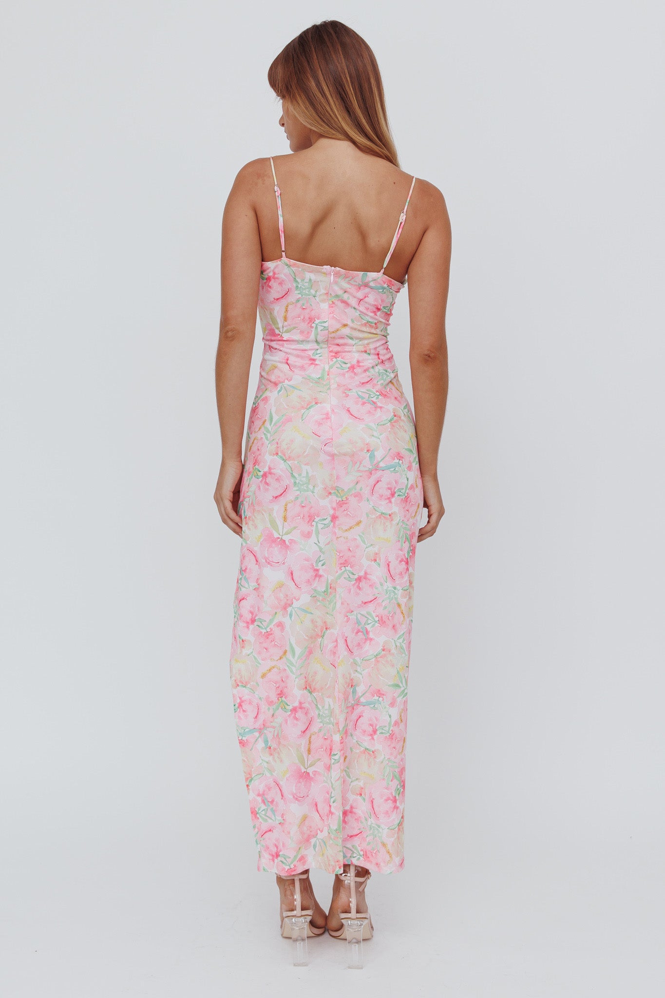 Catriona Split Ruffle Midi Dress Floral Yellow