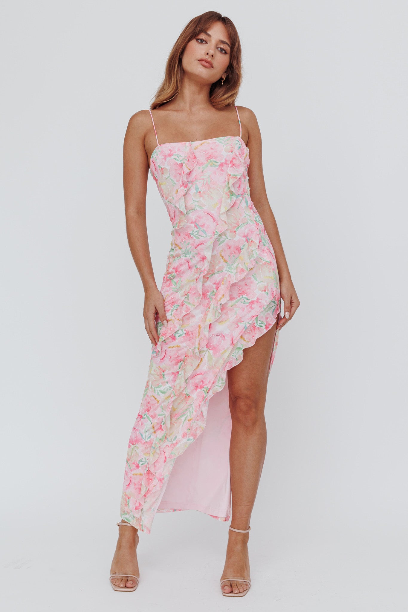 Make an entrance in our gorgeous Catriona midi dress. We are in love with its high thigh split in the side and on-trend ruffle detail. Perfect for a fun girls' night out teamed with strappy heels and a clutch.