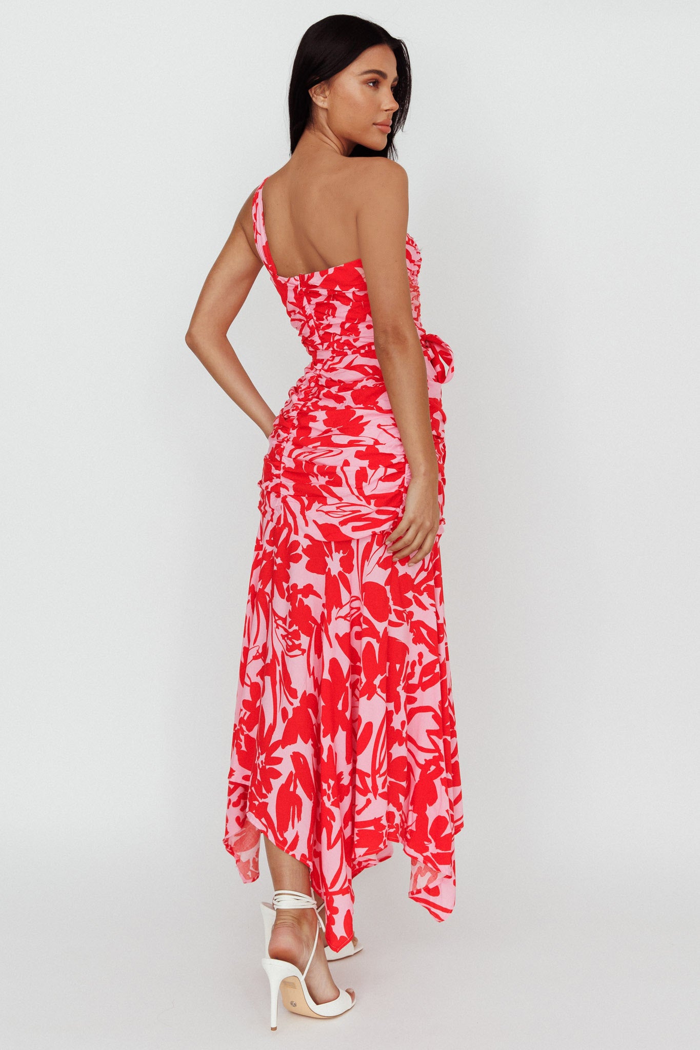 Chandler One-Shoulder Ruched Midi Dress Pink