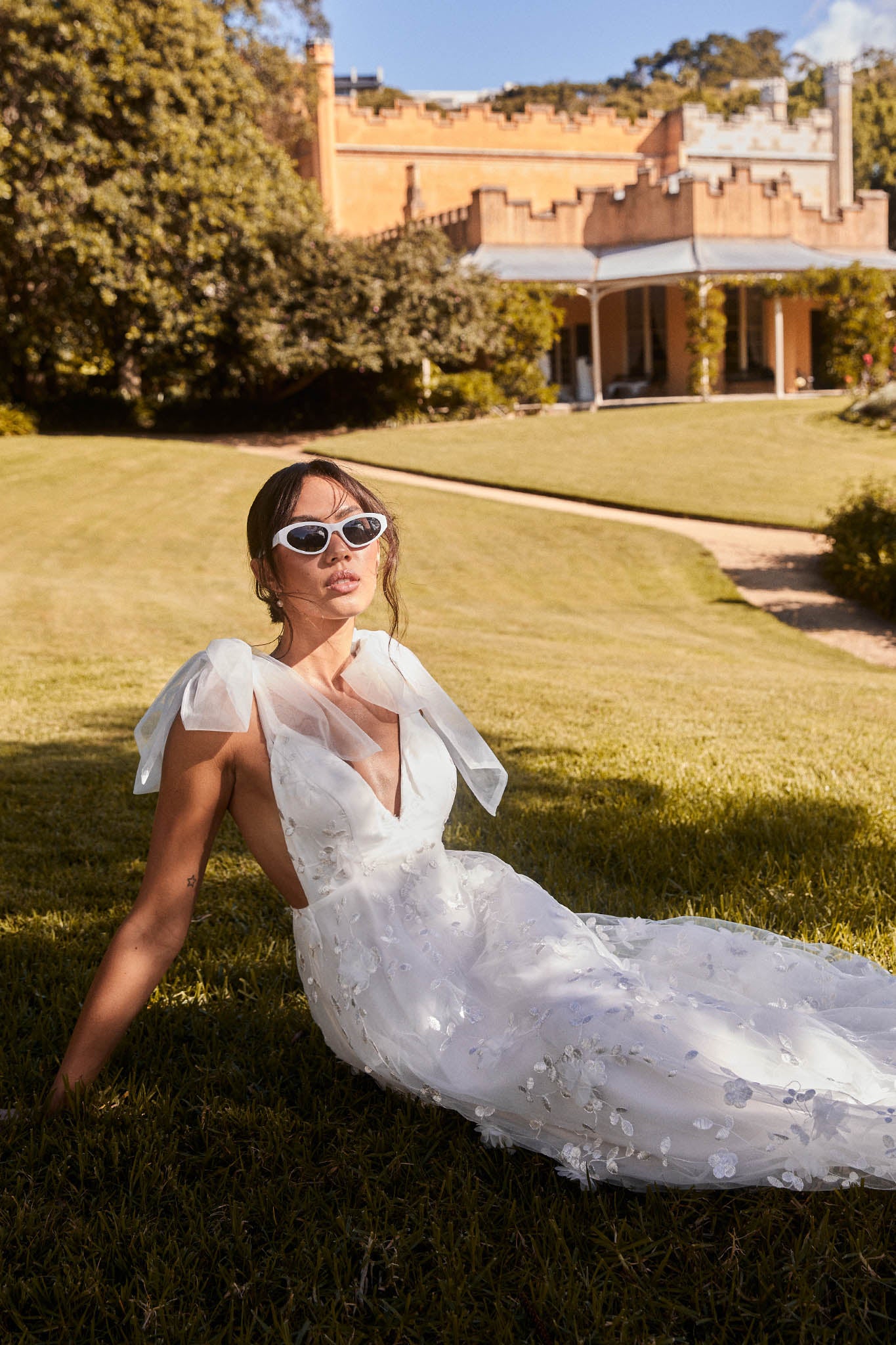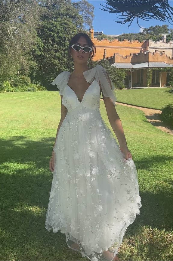 You will be flooded with compliments in our gorgeous Chantilly dress! Obsessed is an understatement when it comes those bow, tied shoulders and stunning floral embellishment throughout. Perfect for wedding celebrations or a birthday soiree! Team it with white heels and a clutch for an unforgettable look!