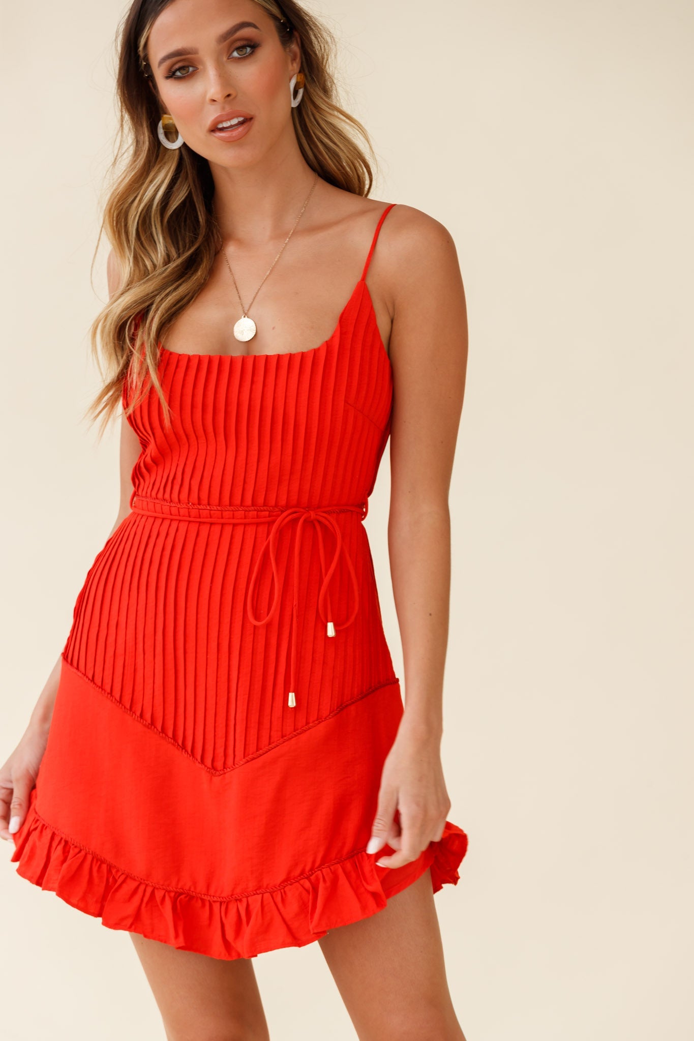 Charmed Pintuck Pleat Spaghetti Strap Dress Red