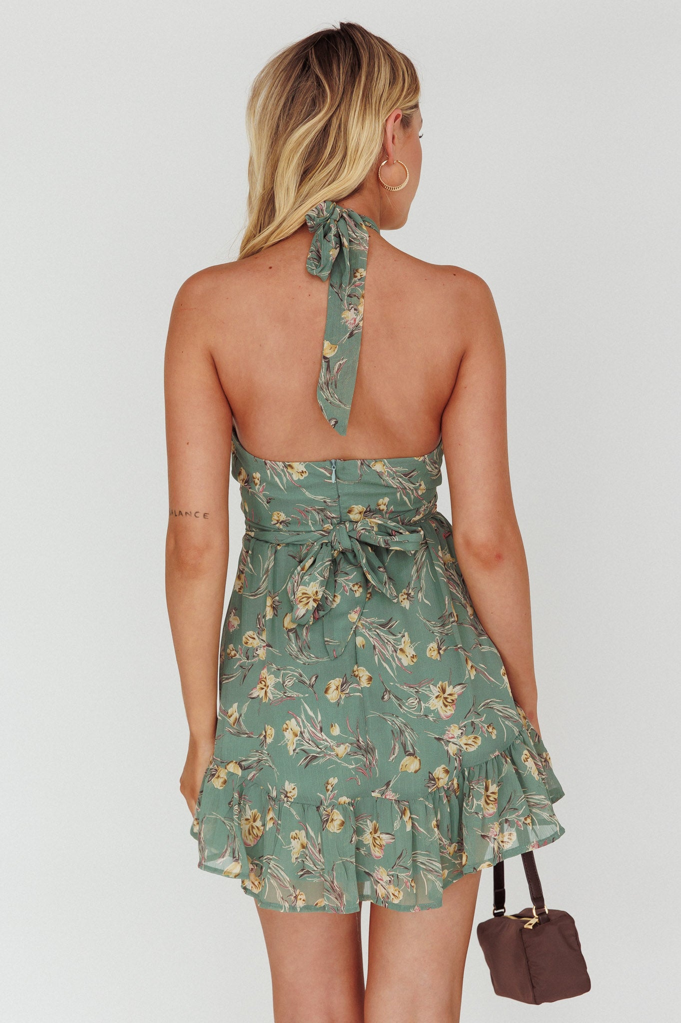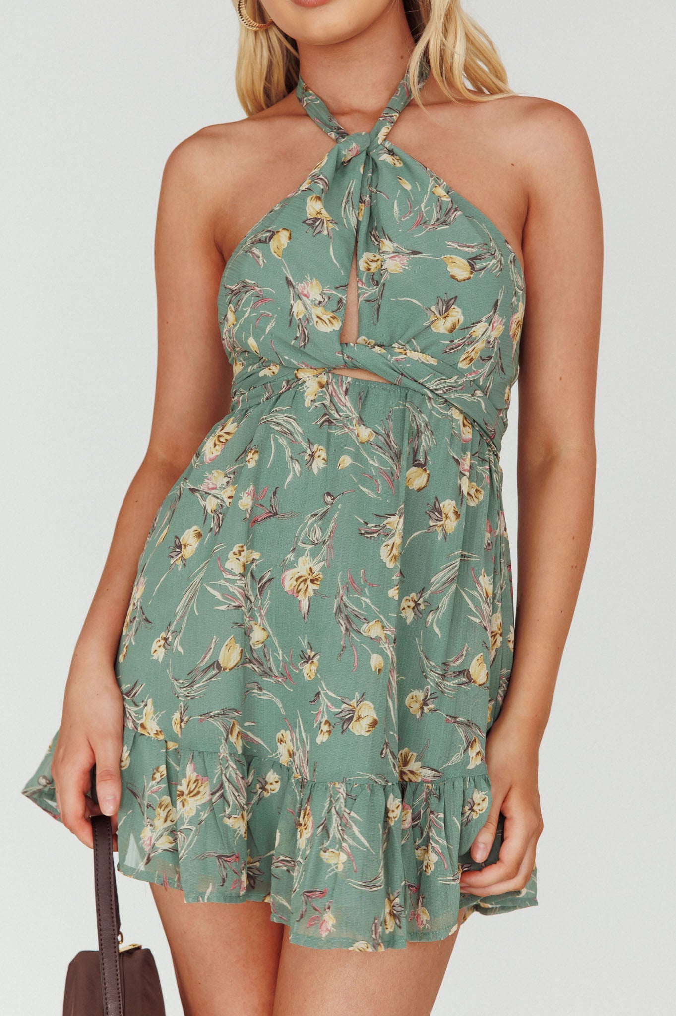 Chase Me Halterneck Mini Dress Floral Sage