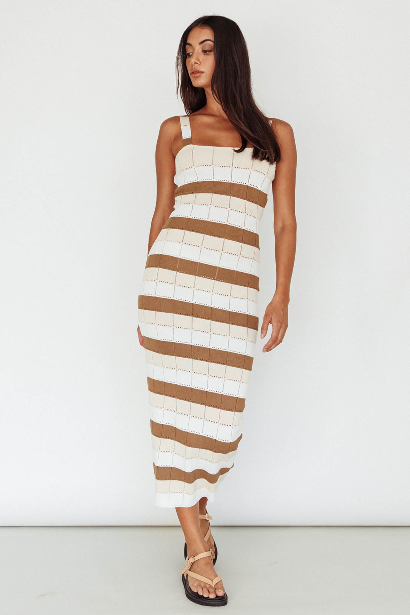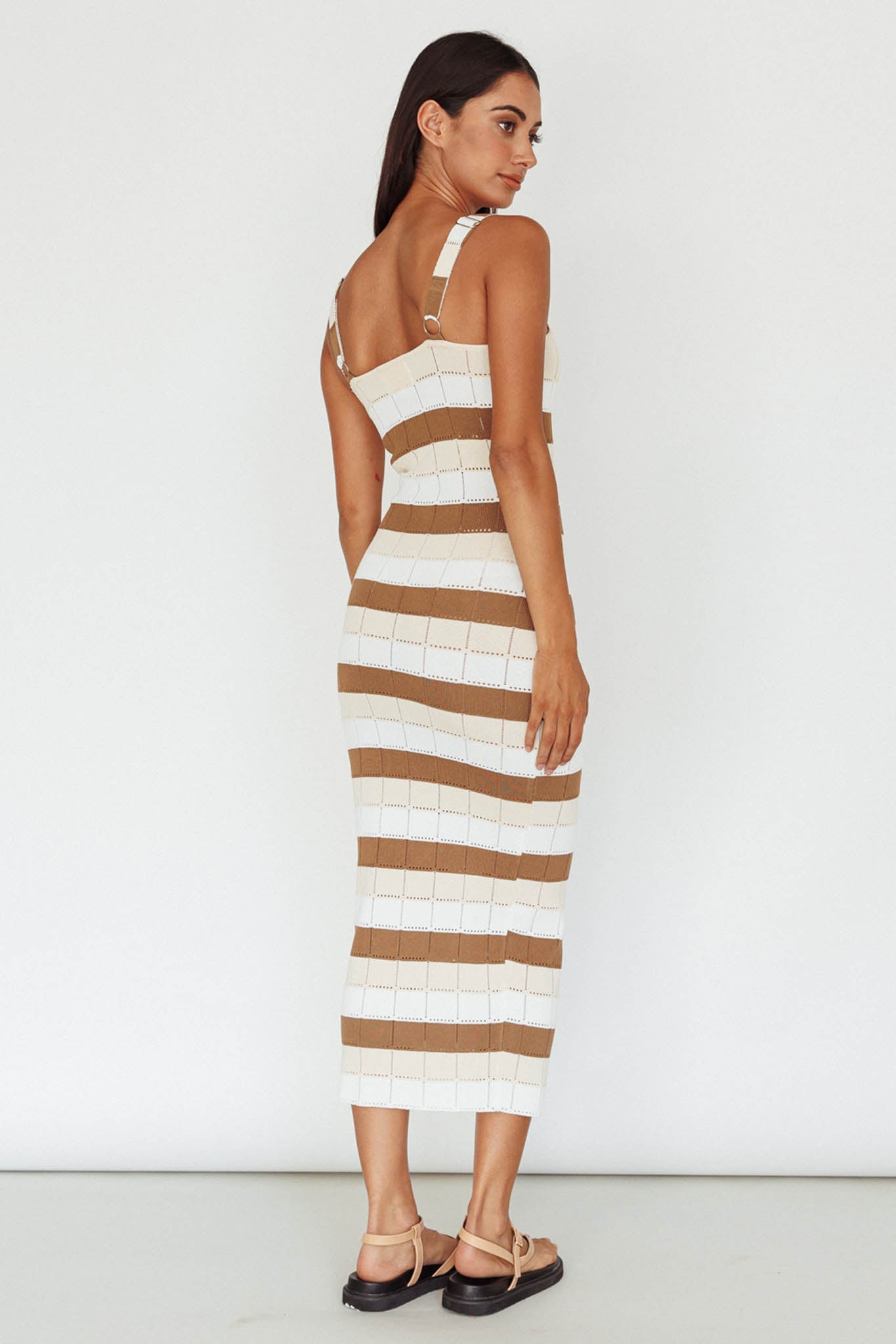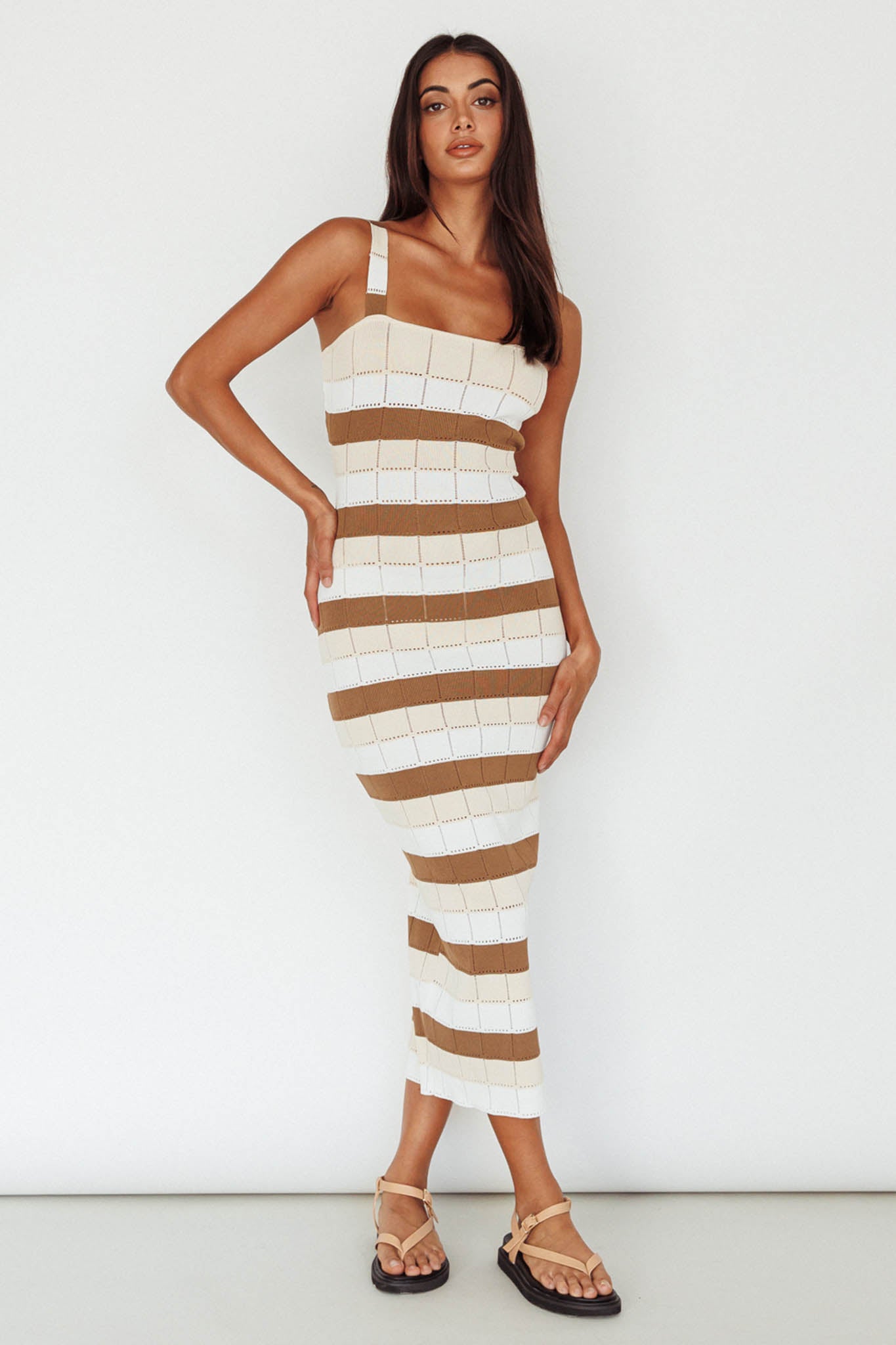 Chase The Sunrise Knit Midi Dress Striped Chocolate/White