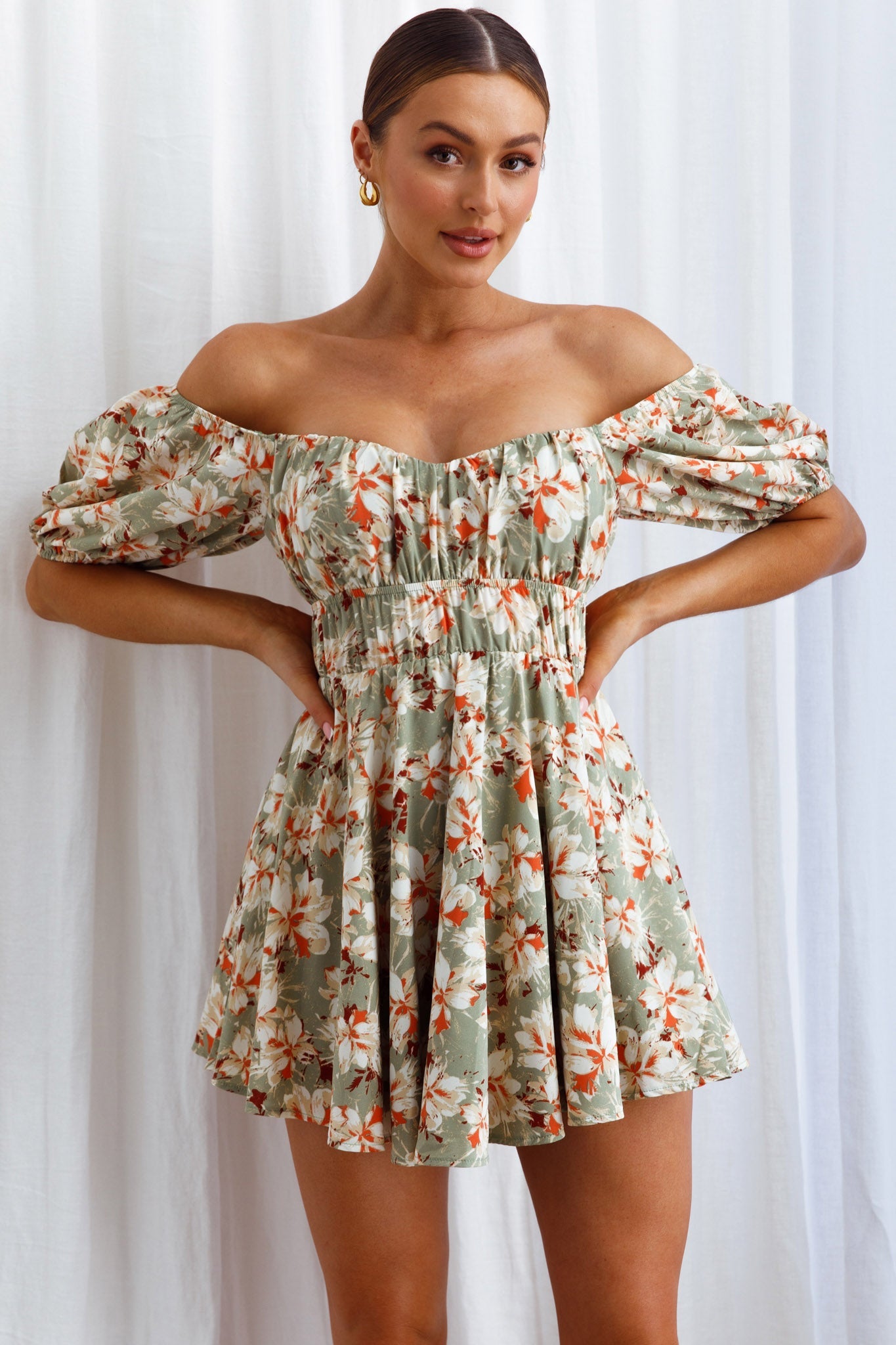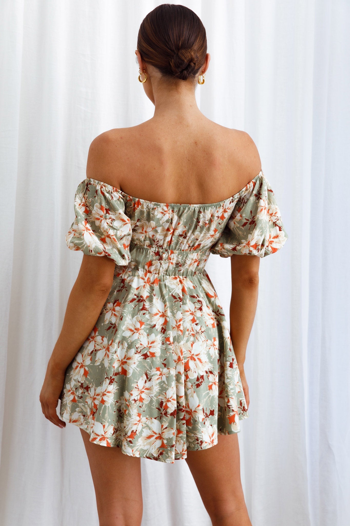 Chasing Sunsets Off-Shoulder Mini Dress Floral Green