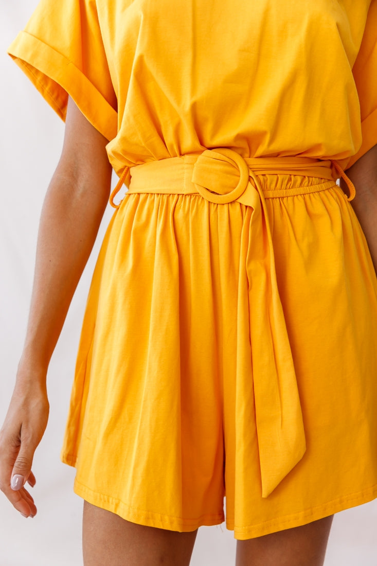Chelsea Belted T-Shirt Romper Mustard