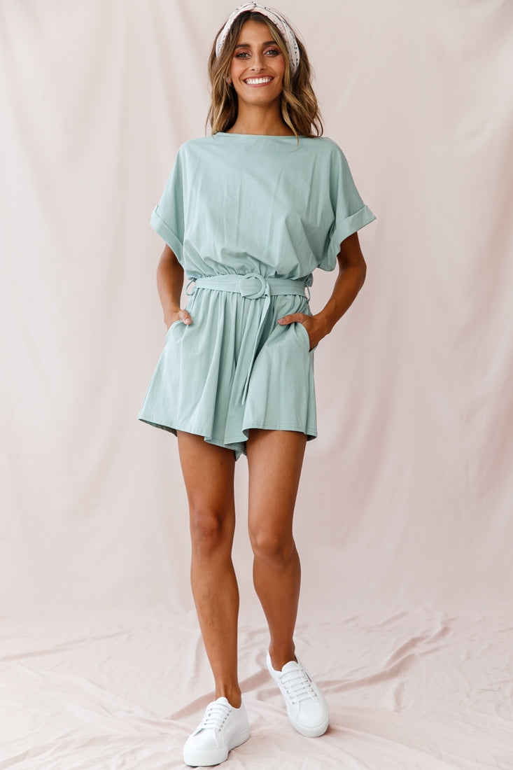 Chelsea Belted T-Shirt Romper Sage