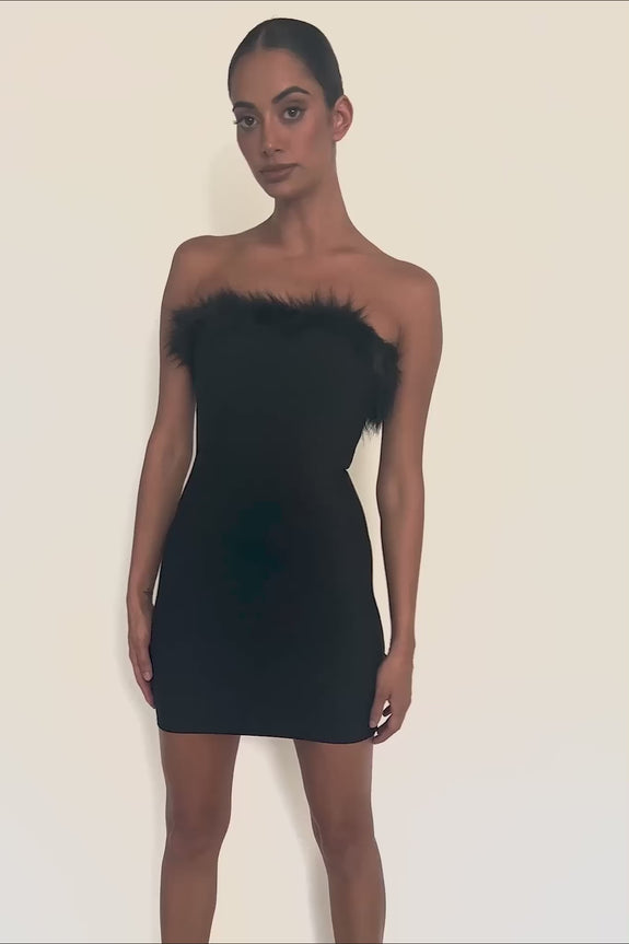 Hey there, cutie! You will steal the show in our hot Cherri mini dress. Featuring a faux fur neckline and bodycon style, we're in love! Perfect for a birthday celebration or homecoming. Team it with strappy, metallic heels for a look we can't get enough of!