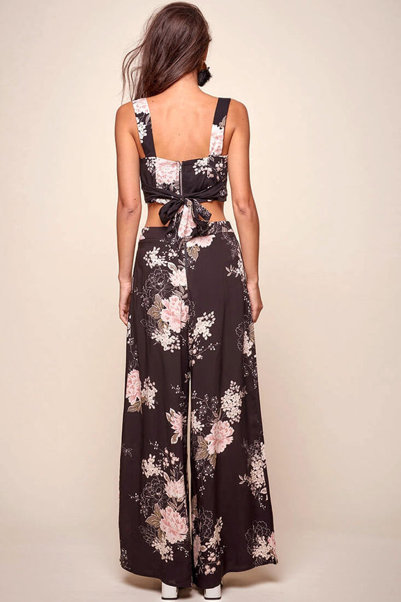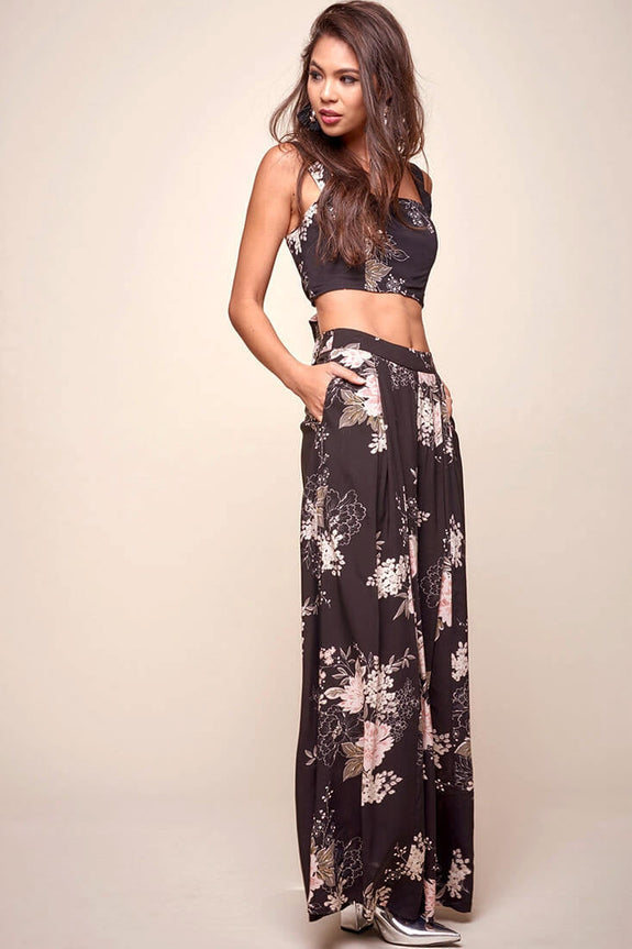 Cicely Floral Crop Top Black