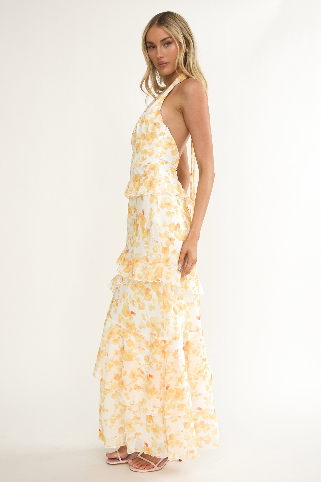 Cipriana Frill Trim Halter Maxi Dress Floral Yellow
