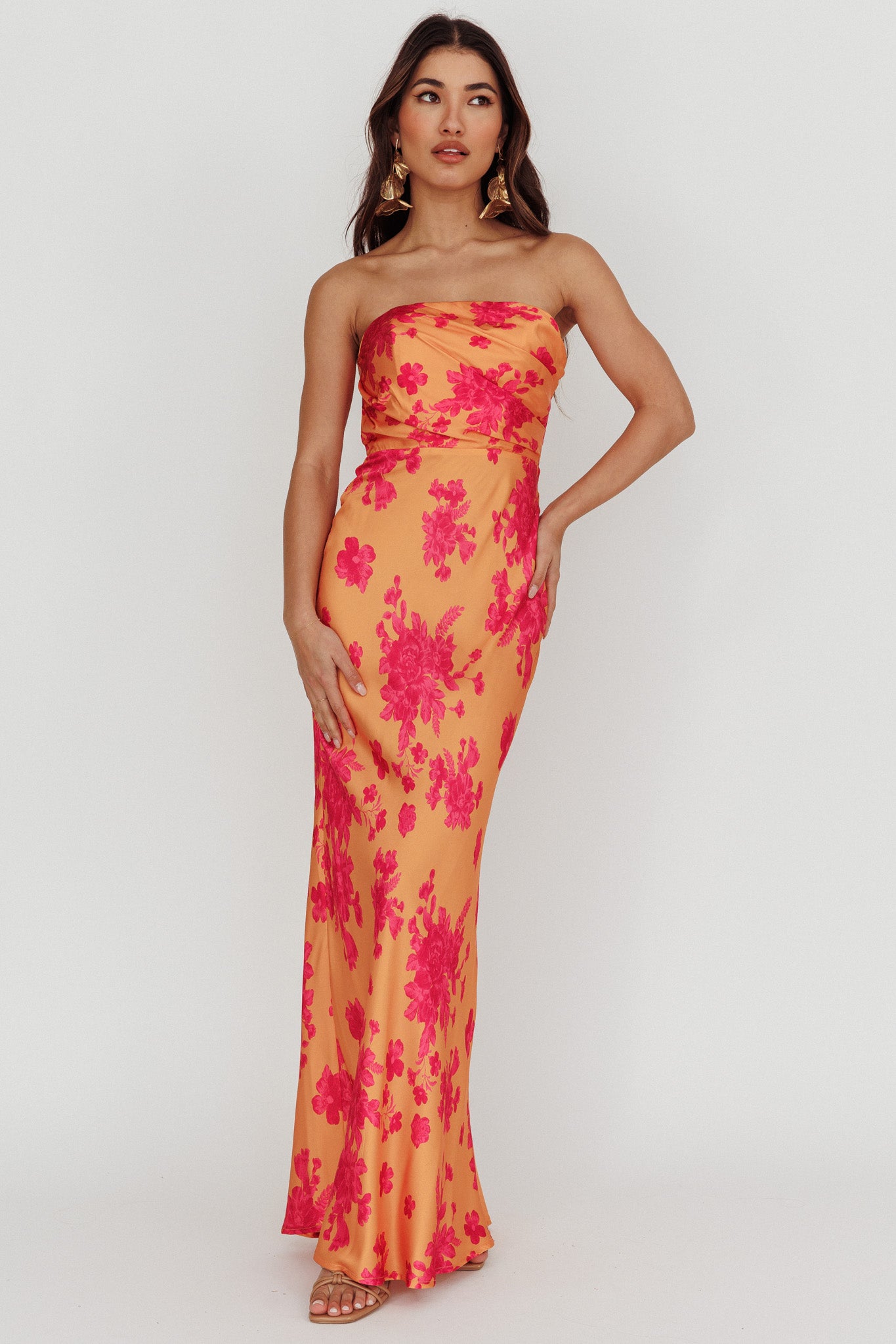 City Of Stars Strapless Maxi Dress Floral Orange