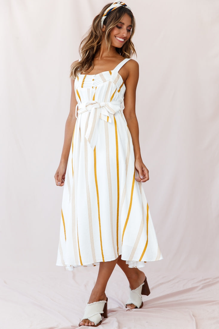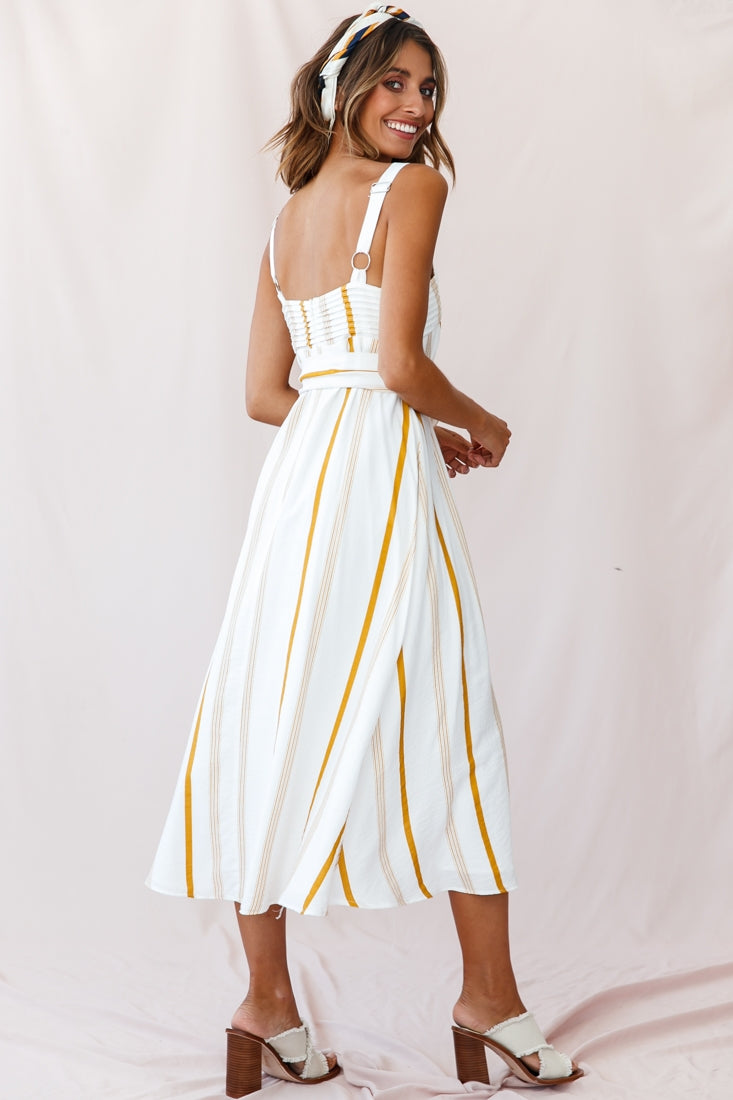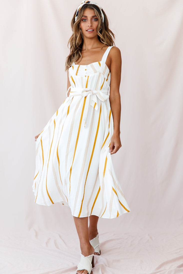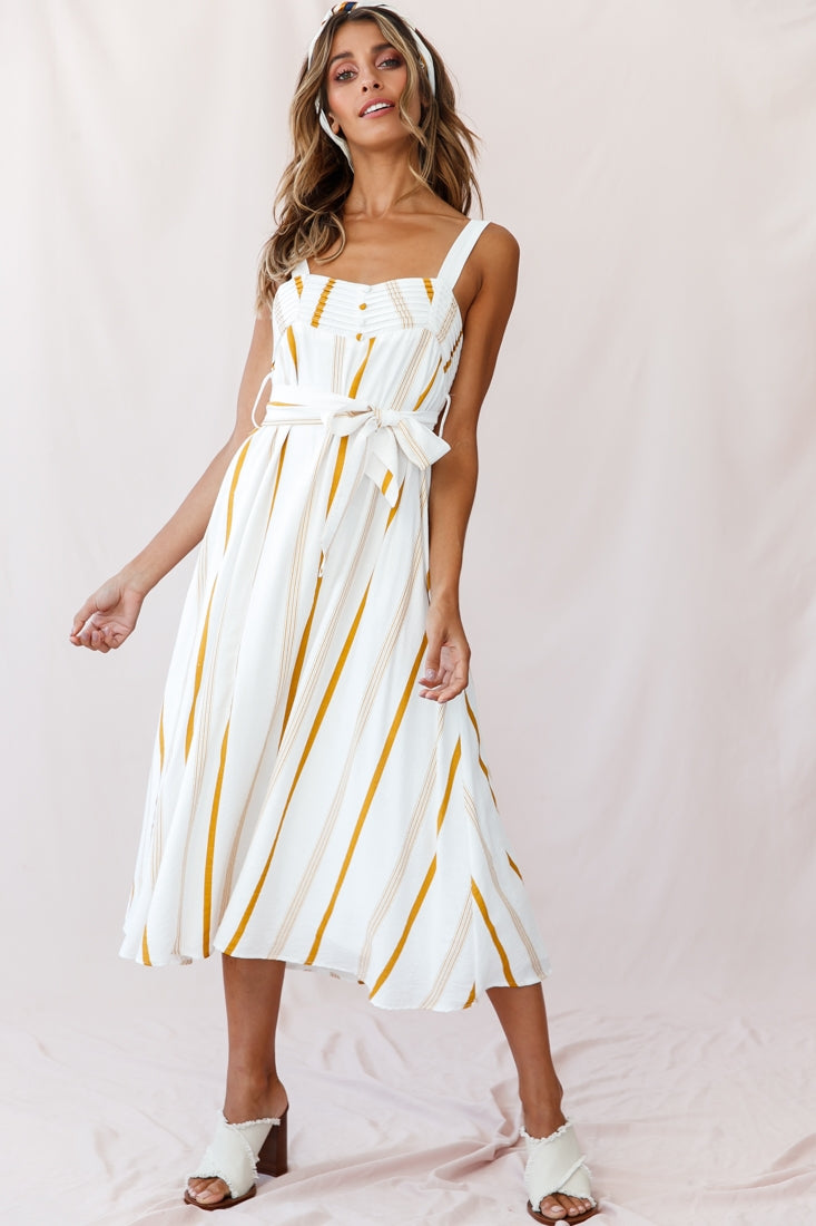 This dress will have you wanting to book the next flight to Europe to stroll cobblestone streets and sip French wines. Our Colmar midi dress features a pretty pleated design over the bust, wide, adjustable straps and separate tie around the waist. Team it with tennis shoes and a woven bag for a fun, casual look.