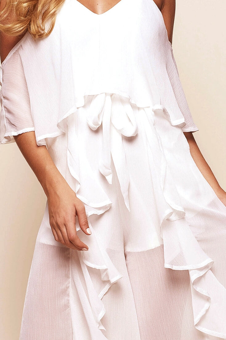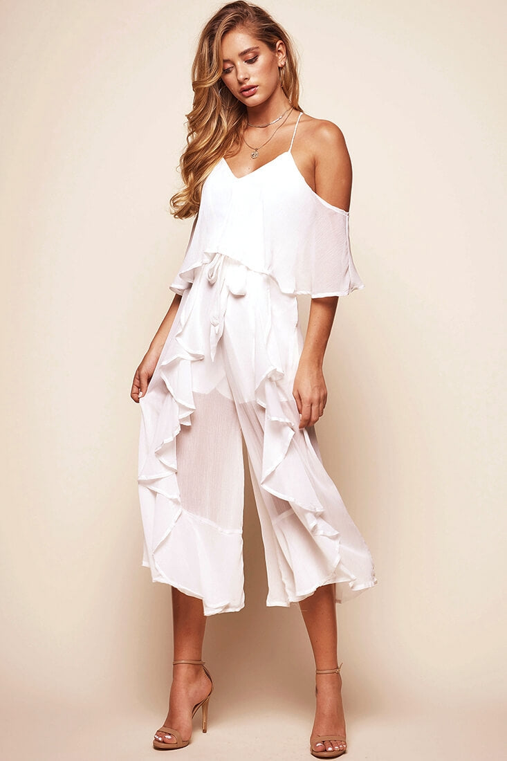 Floaty and feminine, this jumpsuit is perfect for a first date with that guy you've spent all week insta-stalking. It's classy, but just the right amount of sexy with its sheer chiffon fabric. We love the back with its criss-cross-straps-to-sleeves that form a beautiful silhouette. Pair with a nude heel and smokey eye and get ready for a second date.
