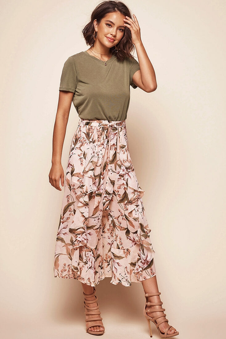 Constance Wide Leg Ruffle Pants Nude Print