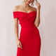 You will be the queen of chic in our gorgeous Corinne dress. We are obsessed with that classic, off-shoulder neckline and pencil style skirt. Perfect for a bridal shower or work event. Team it with nude pumps and a clutch for an elegant look that'll turn heads.