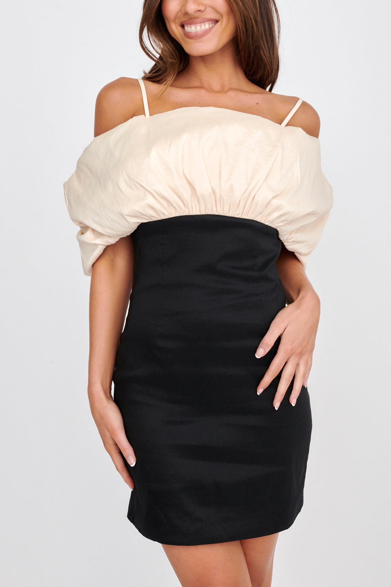 Cosima Puffed Neckline Mini Dress Black/Champagne