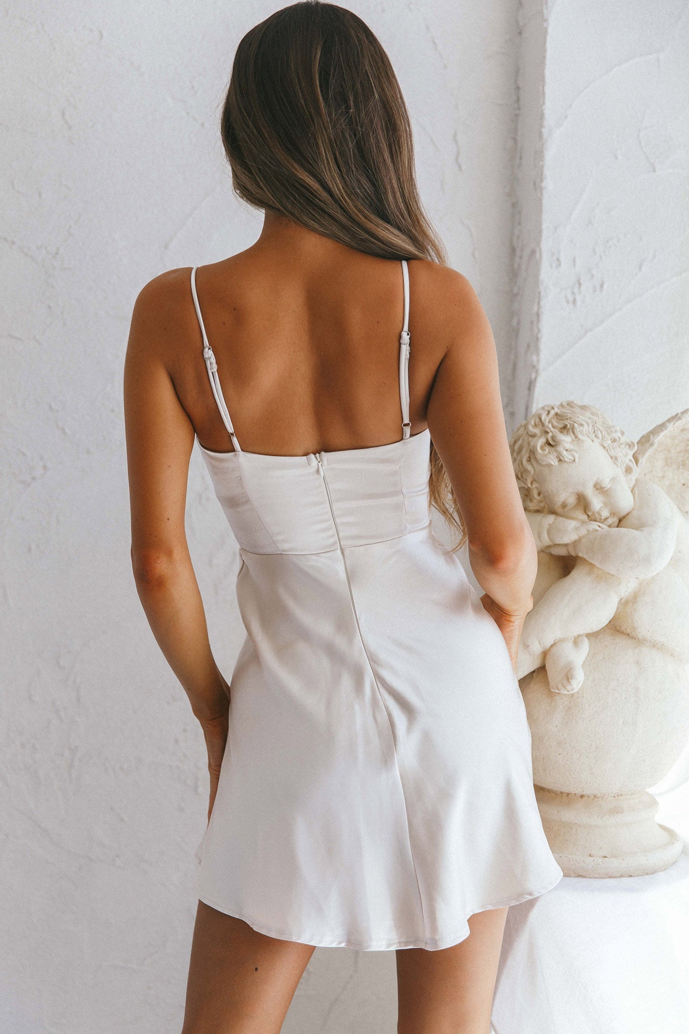 Okay cutie, you are stealing the show in our super hot Cozumel mini dress. Featuring a twist feature in the bust and slinky satin fabric. Perfect for your bestie's birthday party teamed with gold hoops and heels.