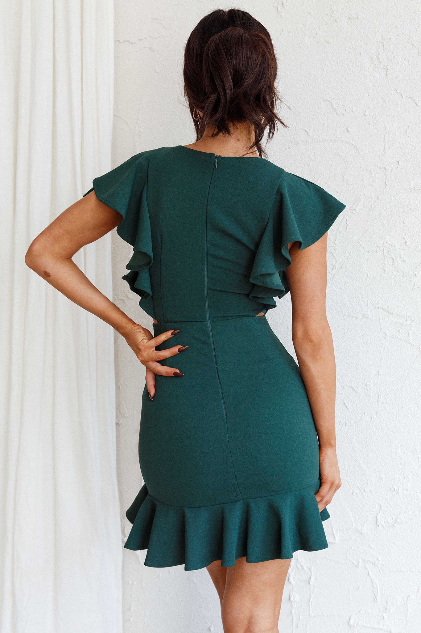 Cupid's Bow Ruffle Shoulder Bodycon Dress Forest Green