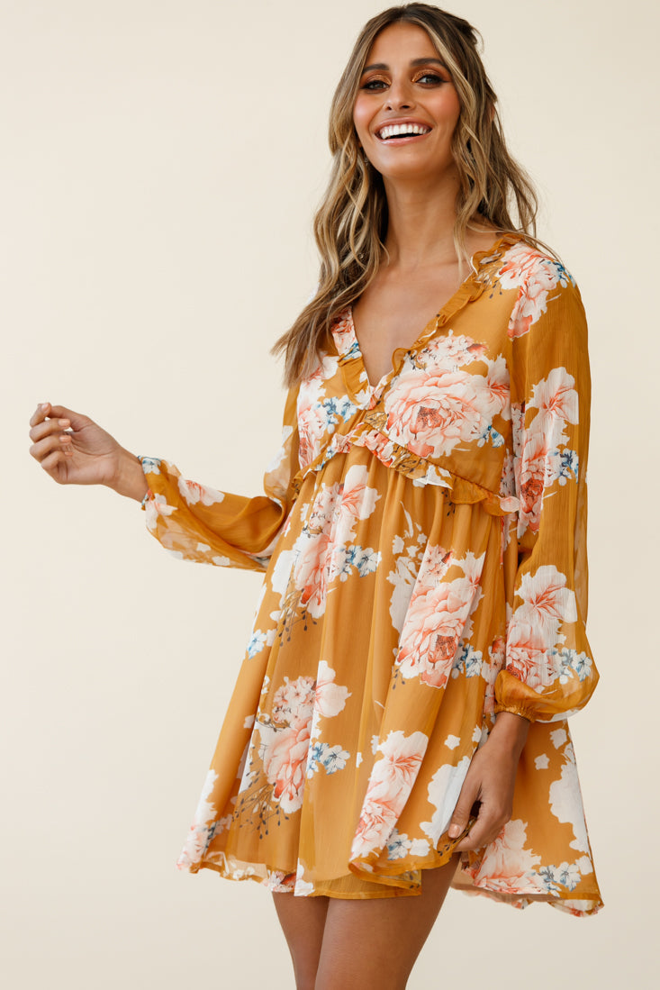 Hey there, cutie! You'll be turning heads in our Cutie Pie babydoll dress. Partially lined, it features long sleeves, elasticated cuffs, a V-neckline and frill trim detailing in the bust. Perfect for a mall day with the girls teamed with tan cowgirl boots and a slouchy tote.