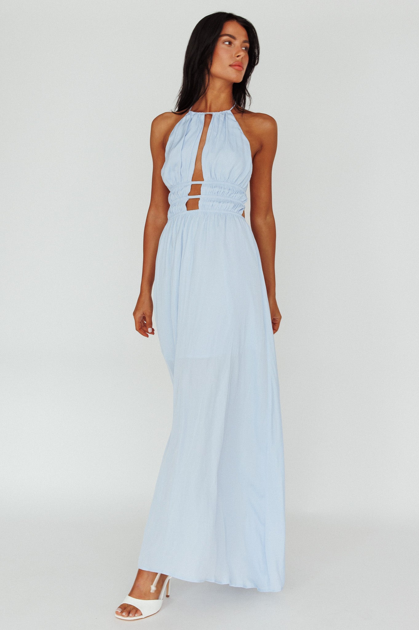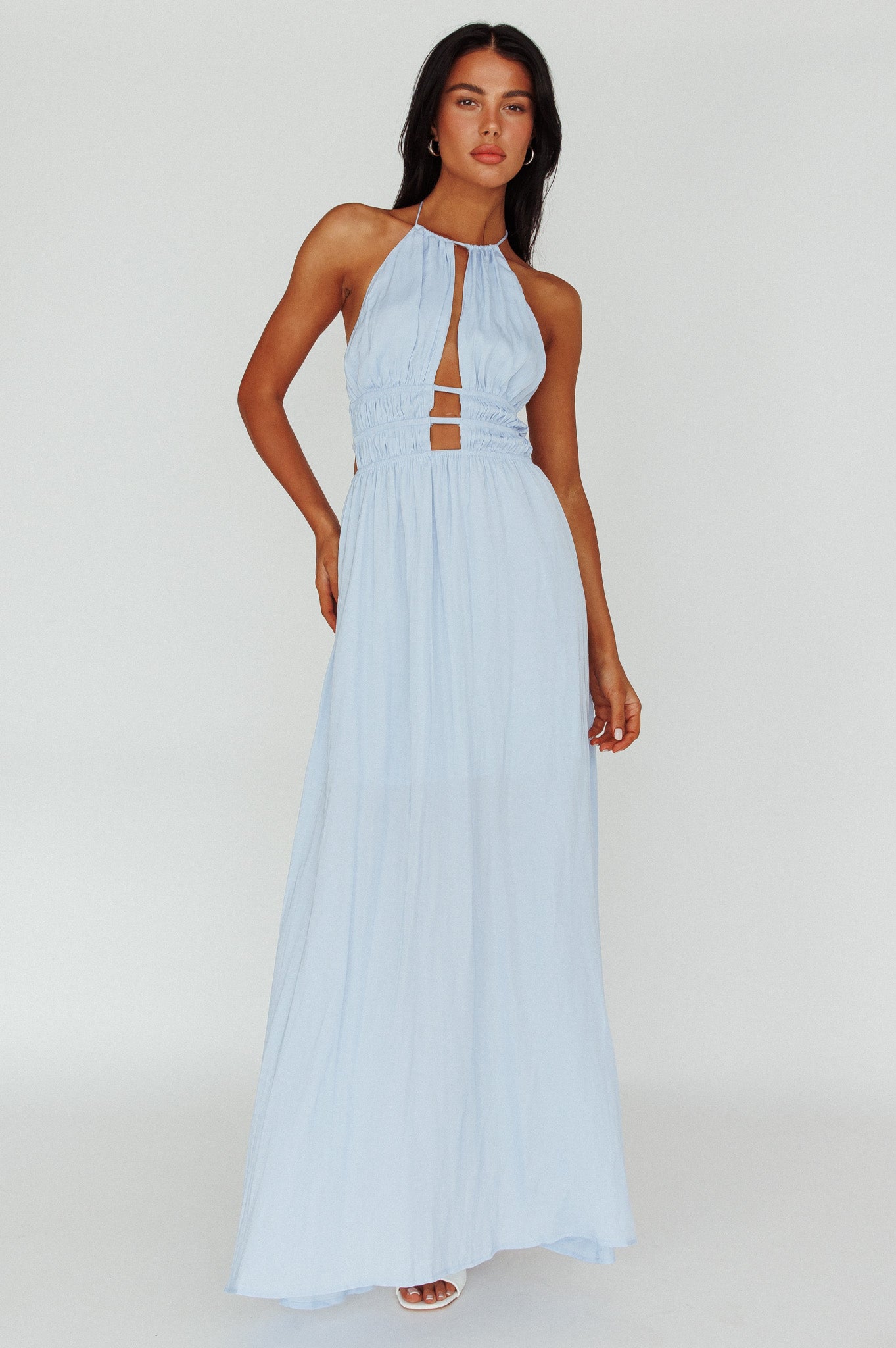 Cyndi Open Back Halterneck Maxi Dress Blue