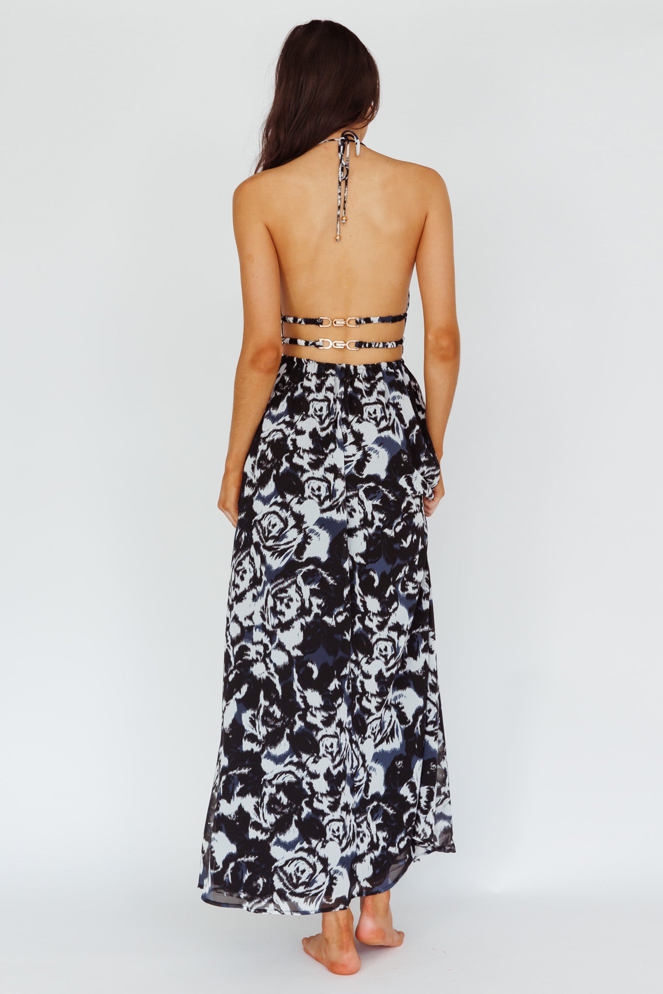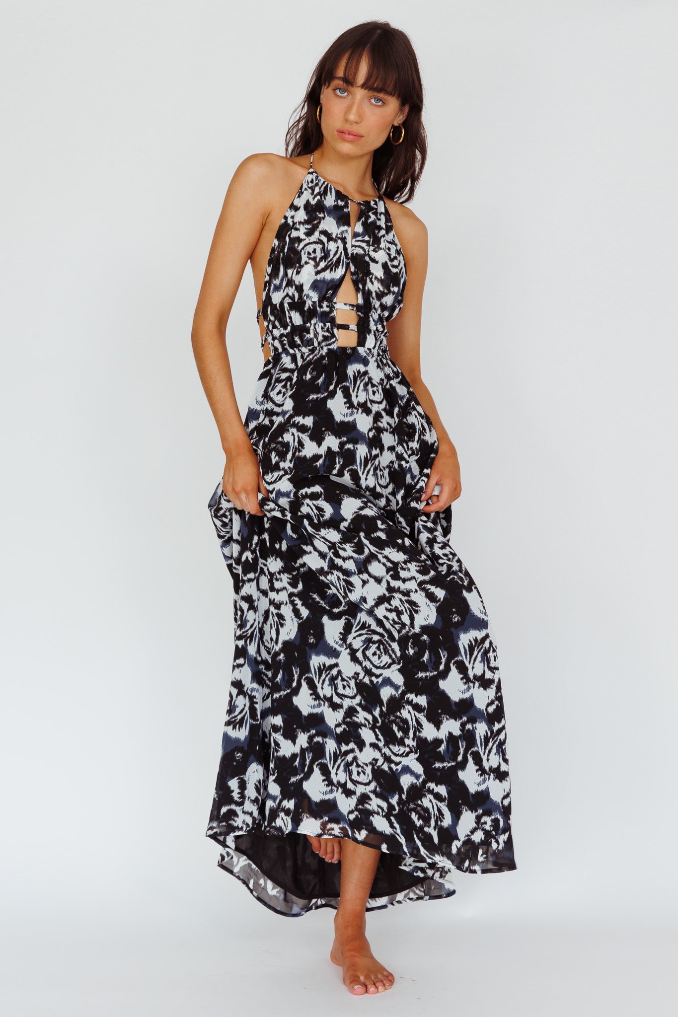 Cyndi Open Back Halterneck Maxi Dress Floral Black