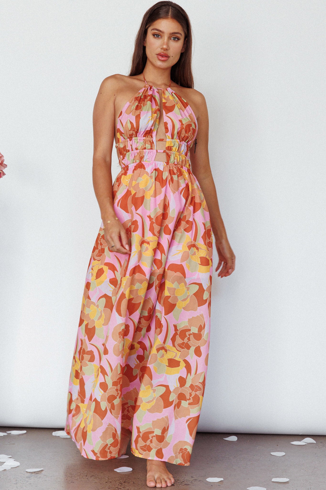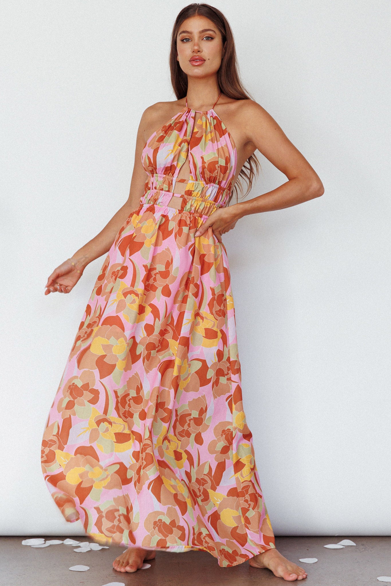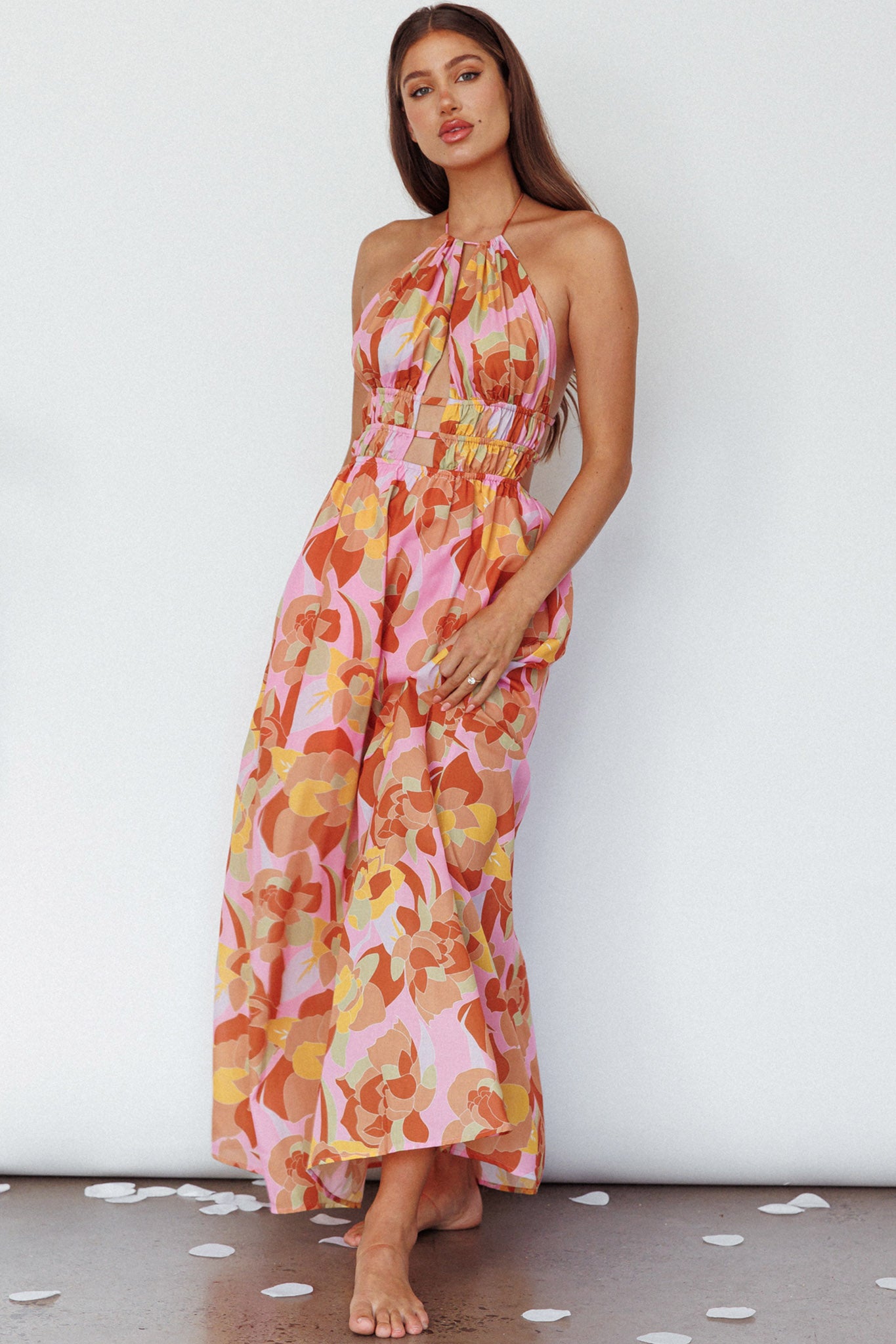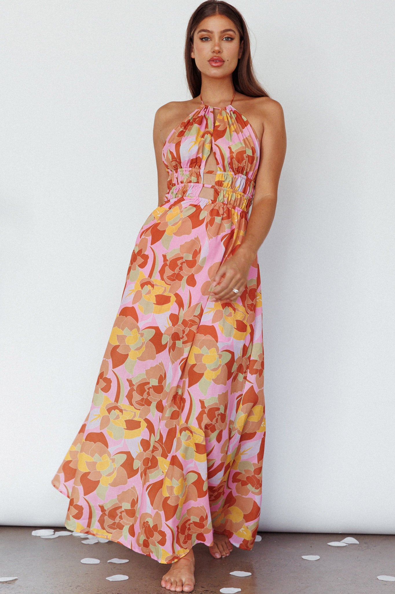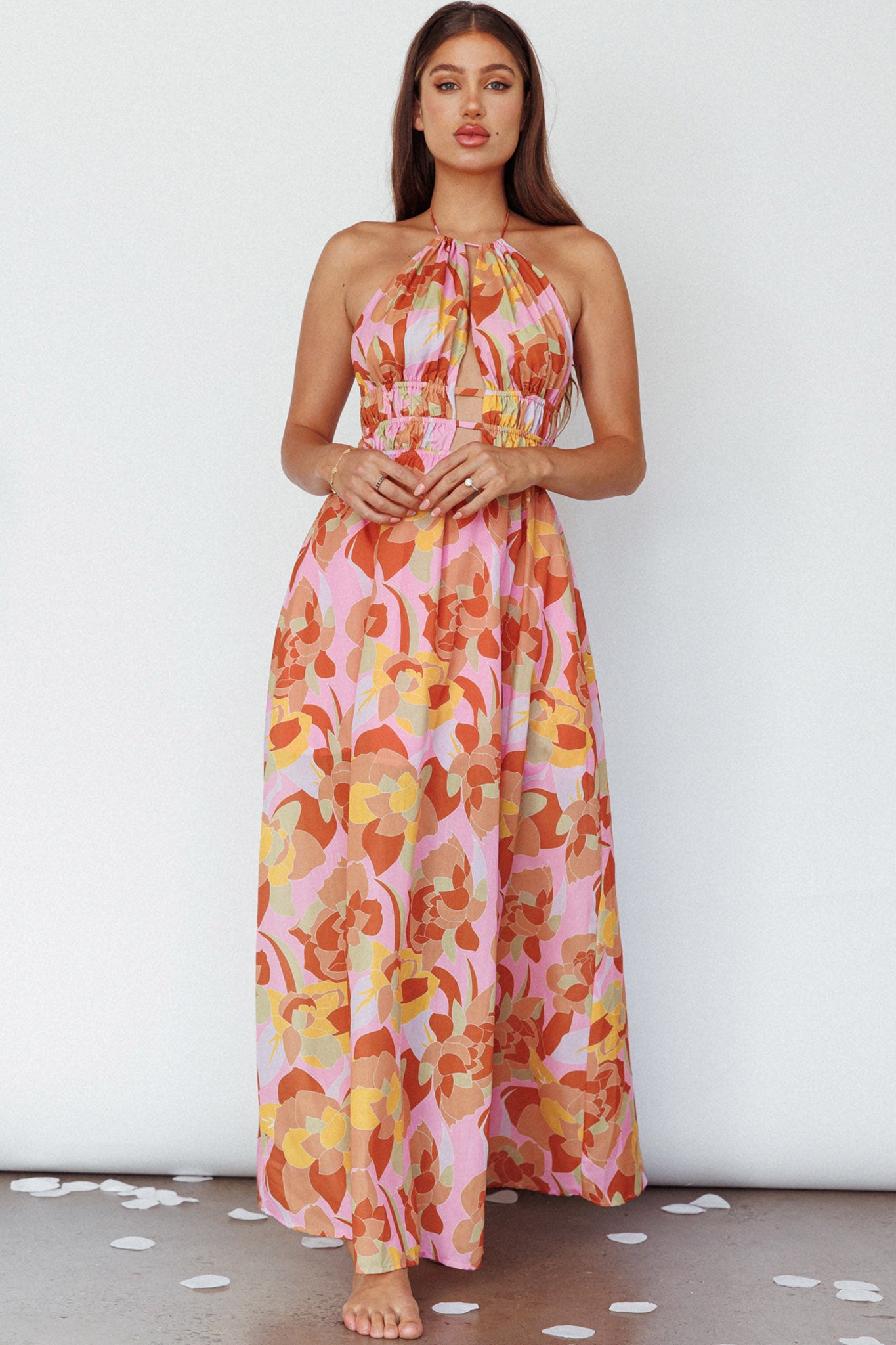 Steal the spotlight in our gorgeous Cyndi maxi dress. Featuring a cut-out bodice and open back with gold buckle detail. It's perfect for a birthday or date night with your love. Team it with mules and a tote for a chic look we are all about.