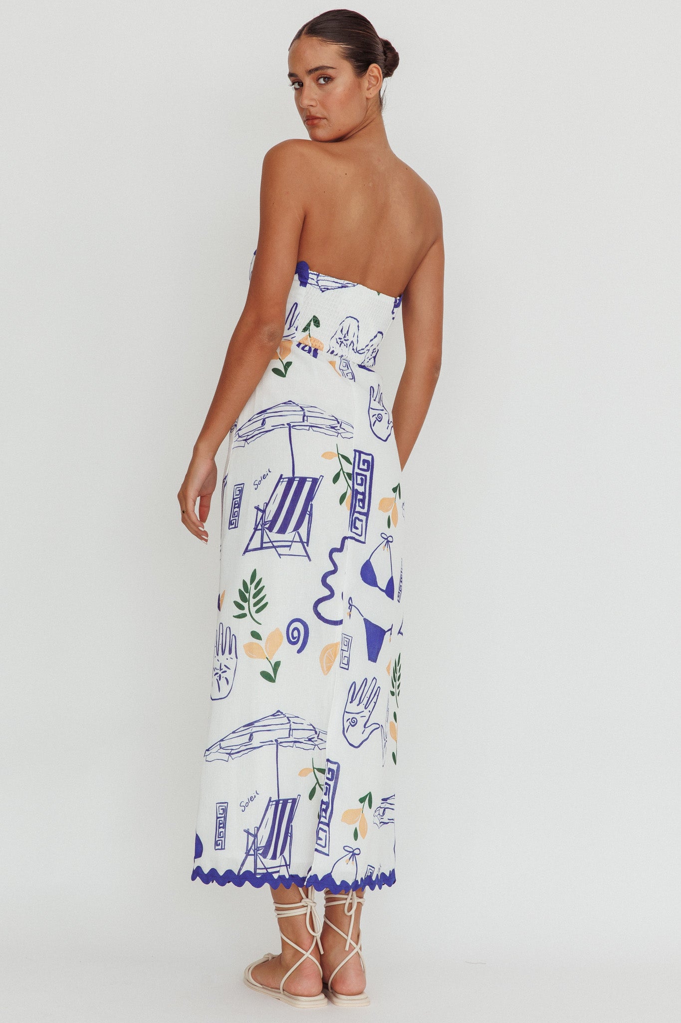 Turn heads in our chic Cypress maxi dress. It features a graphic summer print and ric rac trim- it is perfect for your next vacay with the girls! Team it with sandals and a tote for a super cute look.