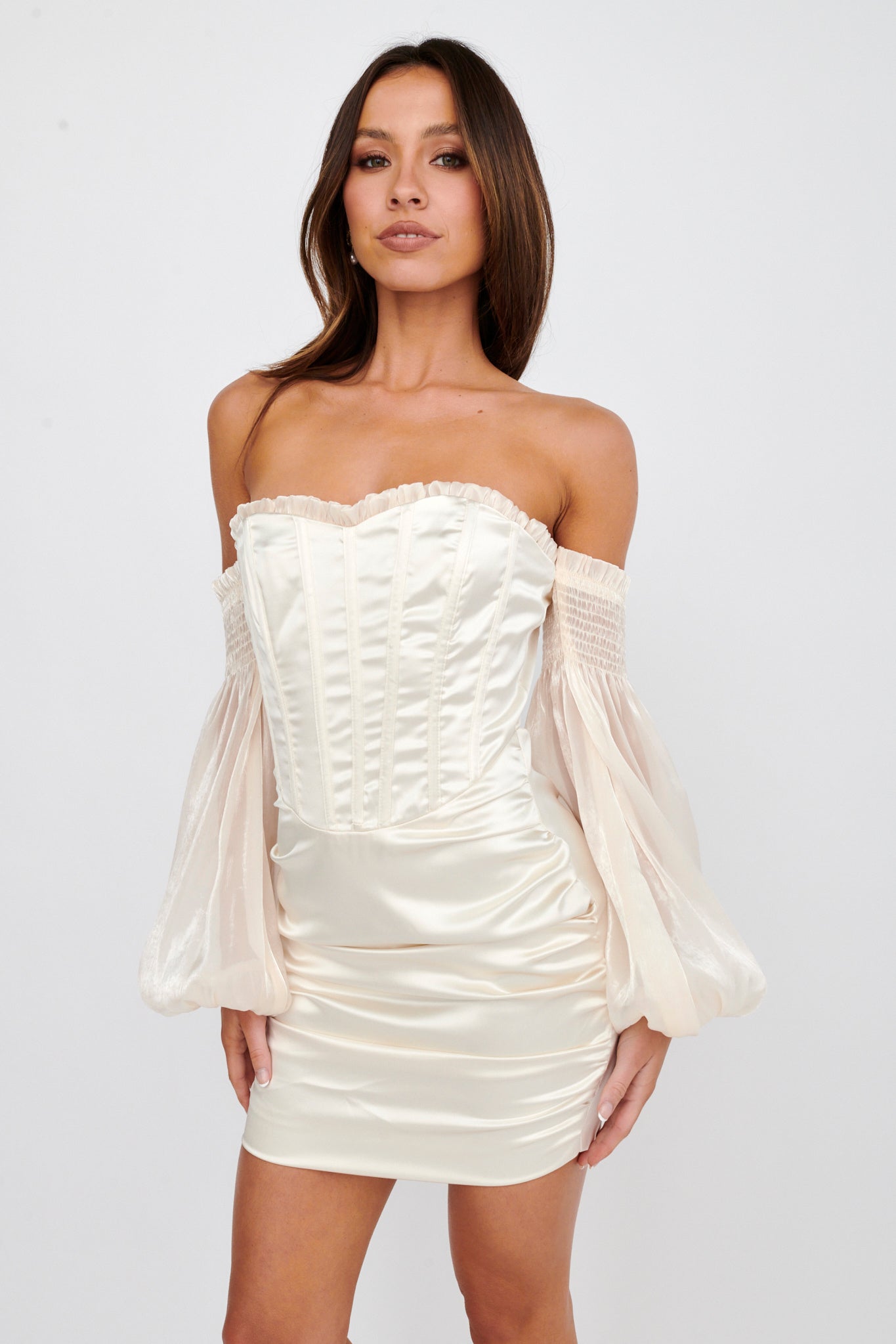 You'll go straight to the best-dressed list in our Dance The Night mini dress. We are obsessed with its corset style bodice and floaty balloon sleeves. Perfect for a flirty dinner date with your crush. Team it with nude heels and a clutch for a look that will leave a lasting impression.