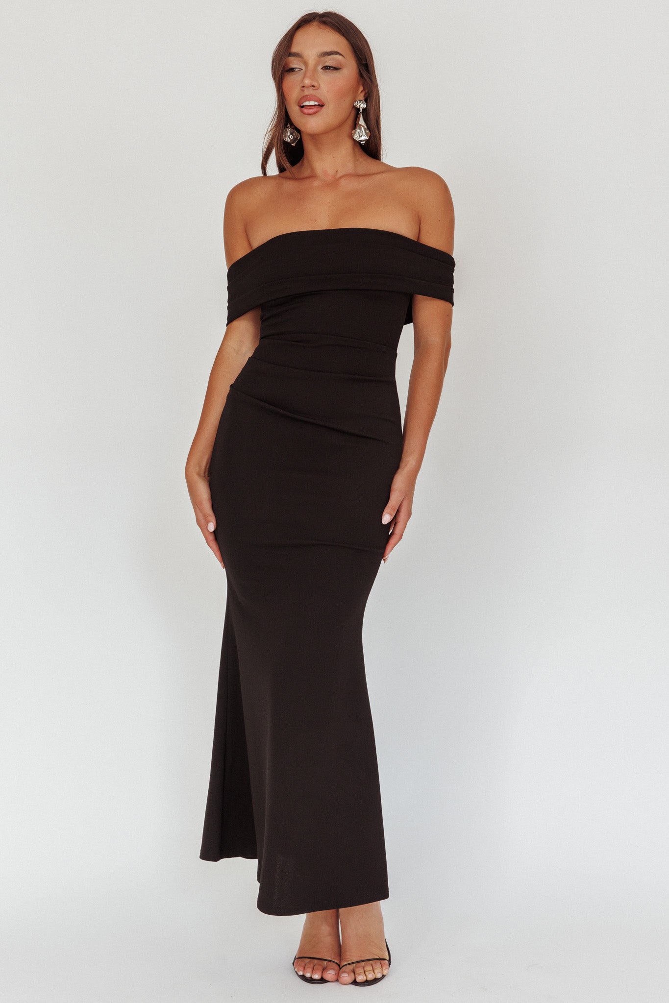 Make an entrance in our stunning Dancing Queens maxi dress. It features an off-shoulder design and an oversized bow in the back. It's perfect for a wedding or special event teamed with diamante mules and a clutch for an unforgettable look.