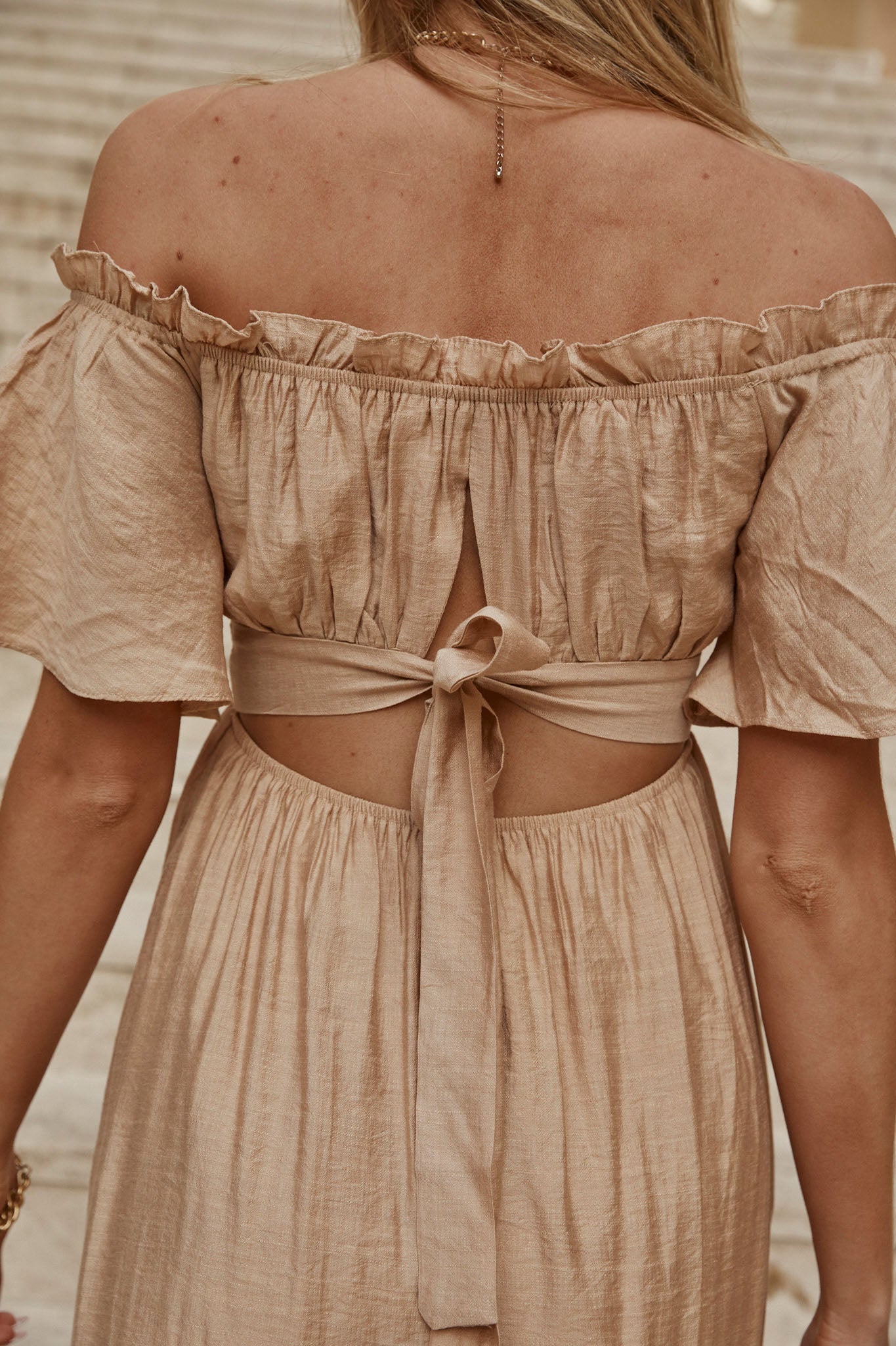Dandelion Off-Shoulder Tied Back Midi Dress Sand