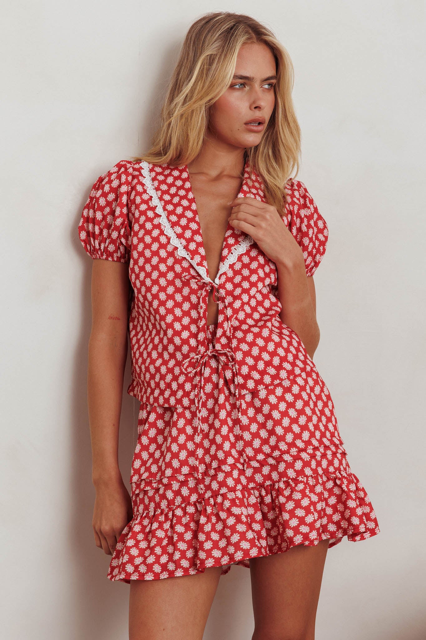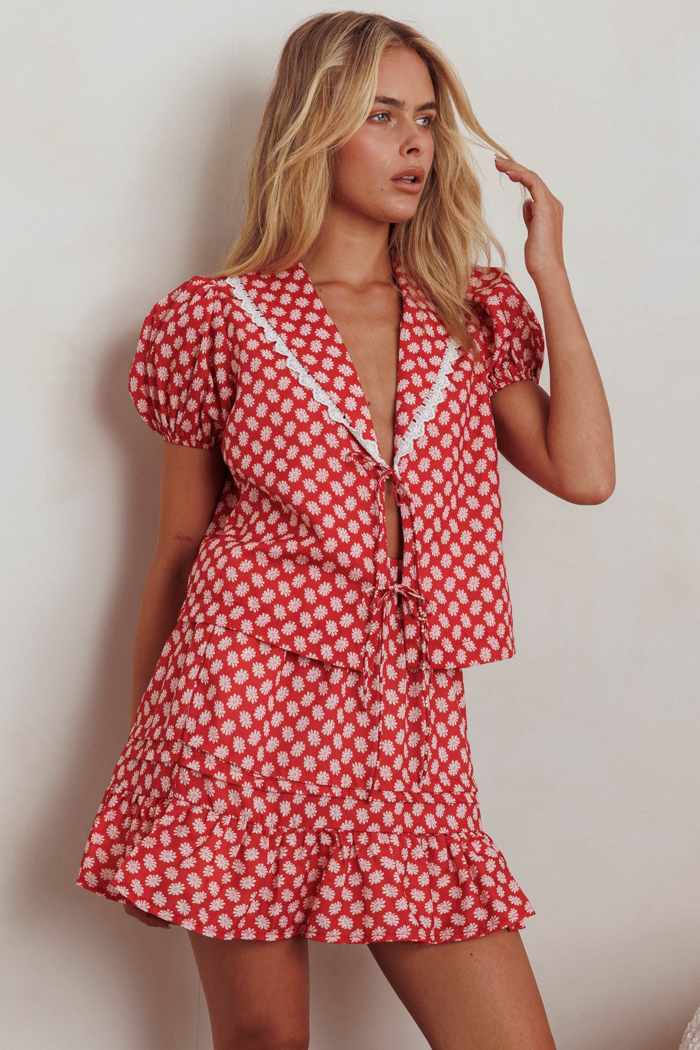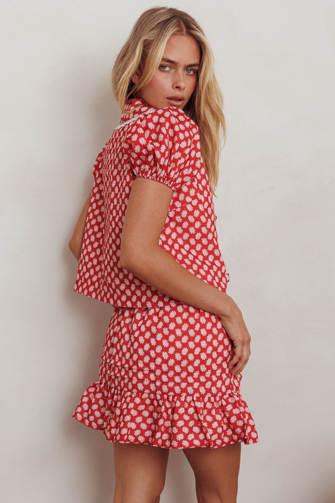 Danessa Frill Hem Pintuck Skirt Floral Red