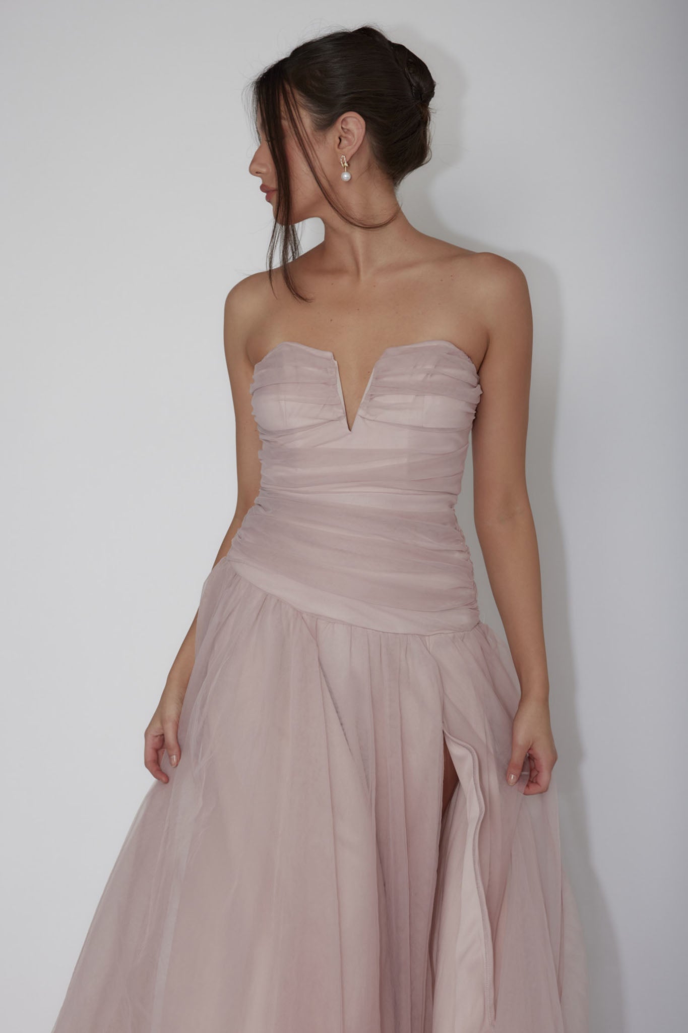 Daphnie Drop Waist Tulle Midi Dress Blush