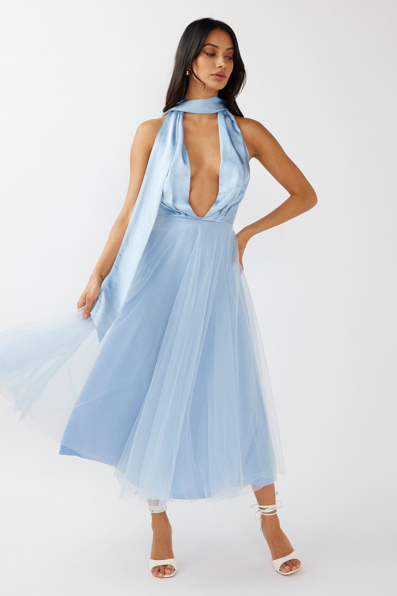 Steal the limelight in our stunning Darci midi dress. Featuring a pretty, tulle skirt and plunging neckline. It's perfect for a big birthday celebration or special occasion! Team it with nude heels and a clutch for an unforgettable look.