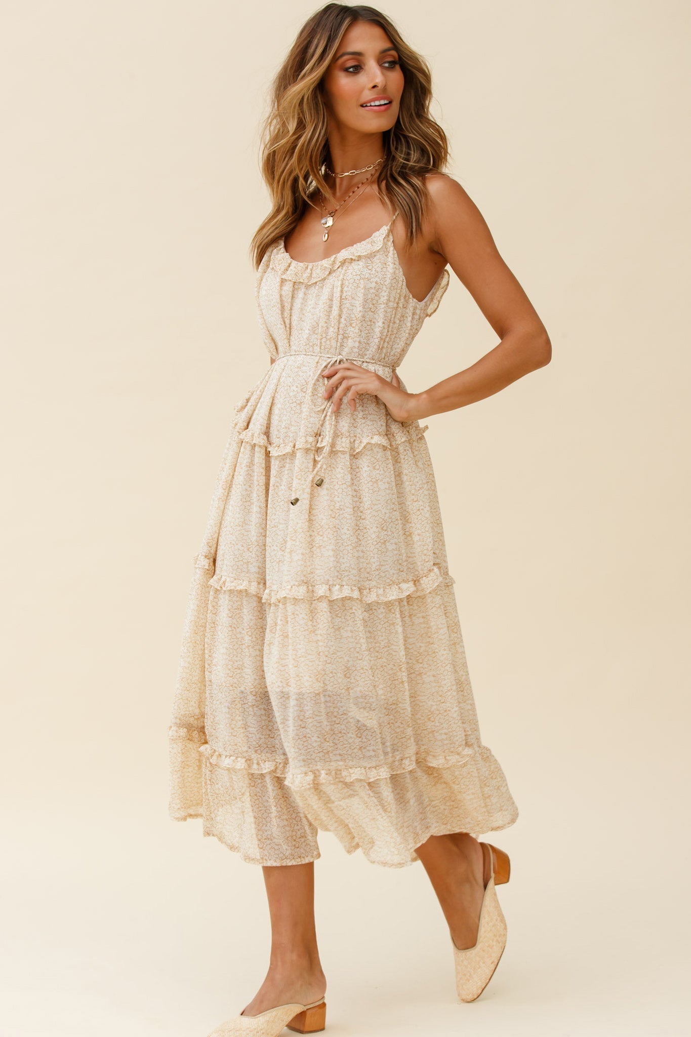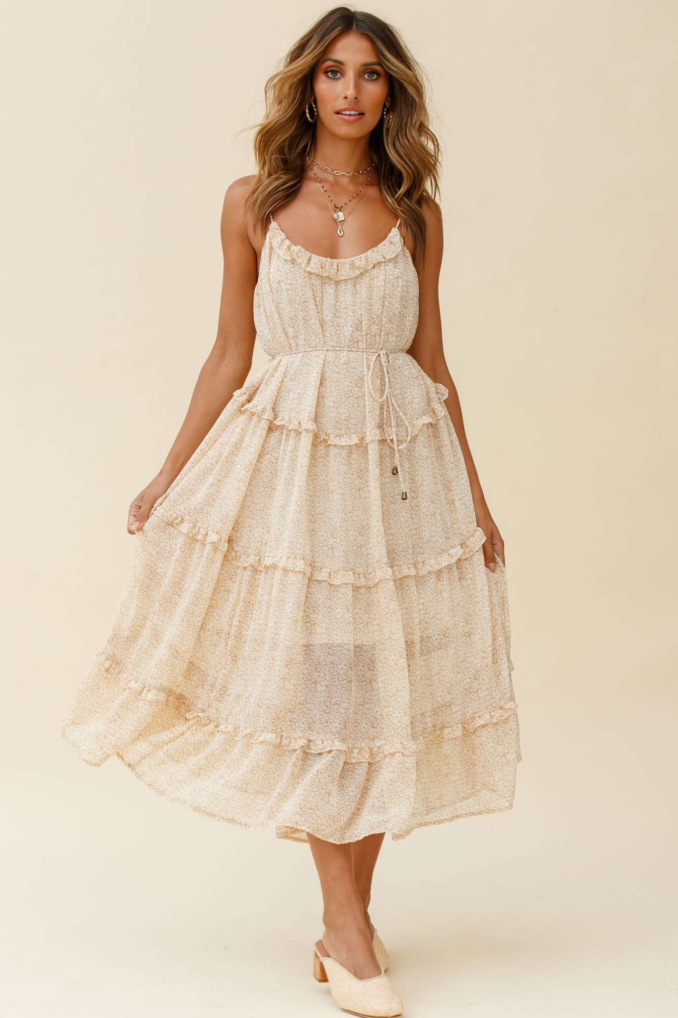 You'll feel like running through a field of wildflowers in our dreamy Daybreak midi dress. Featuring romantic frill trim details and a separate string-tie around the waist. Team it with tan sandals and a basket bag for a simple but sweet Summer look.