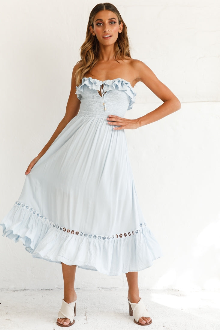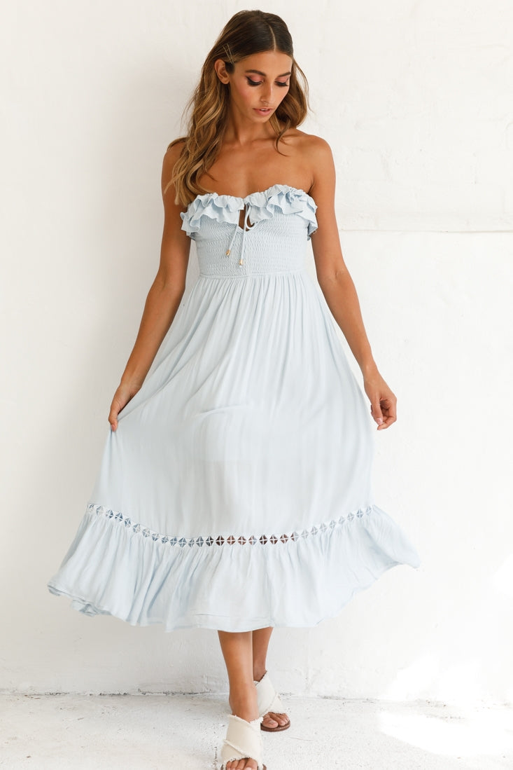 Daydream Shirred Bust Frill Trim Maxi Dress Ice Blue