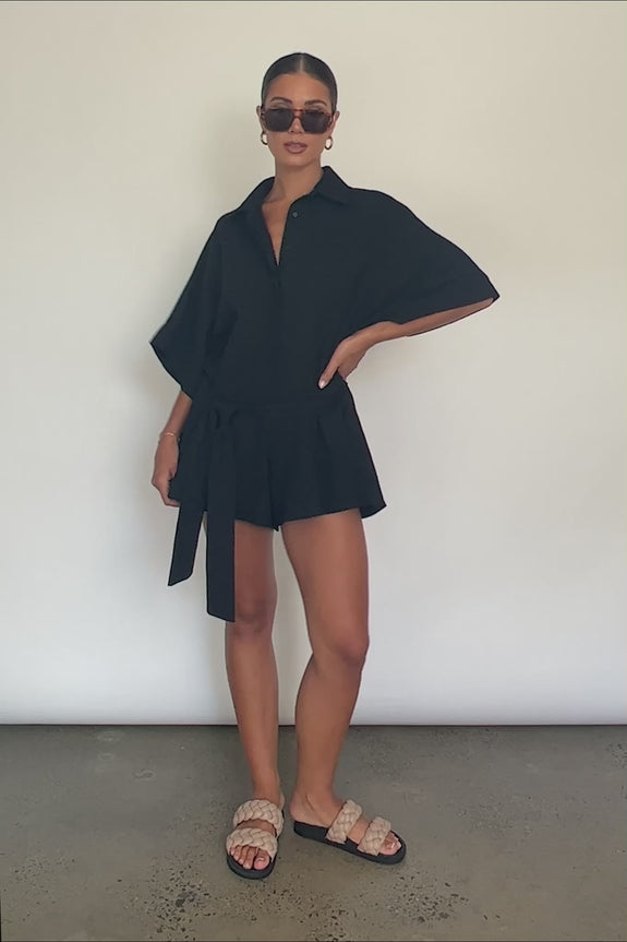 Breeze through your day in style in our chic Daytona Beach romper. Featuring a relaxed fit and removable waist tie, it's perfect for weekend coffee dates with your girls teamed with a straw tote and slides.