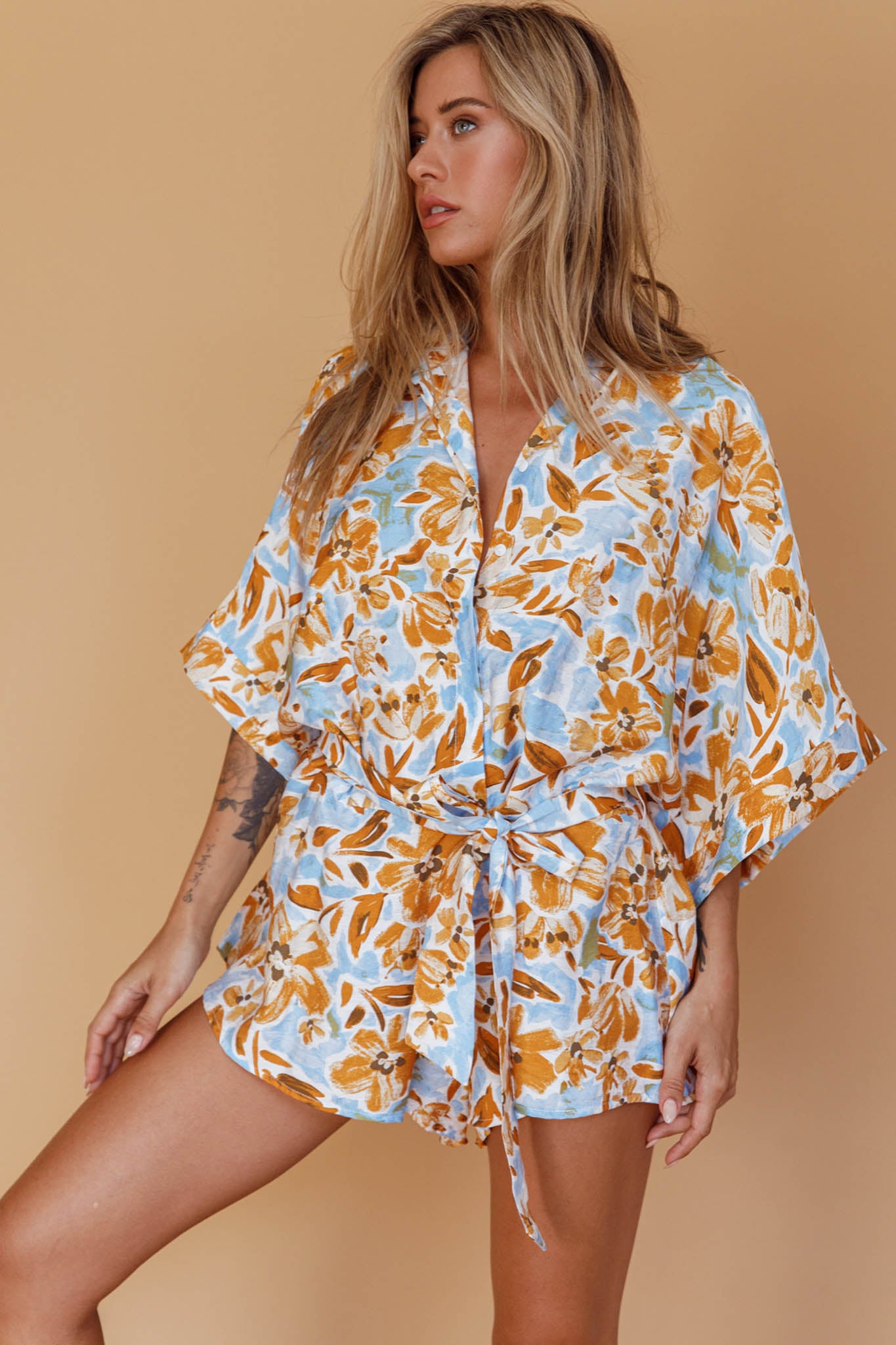 Breeze through your day in style in our chic Daytona Beach romper. Featuring a relaxed fit and removable waist tie, it's perfect for weekend coffee dates with your girls teamed with a straw tote and slides.