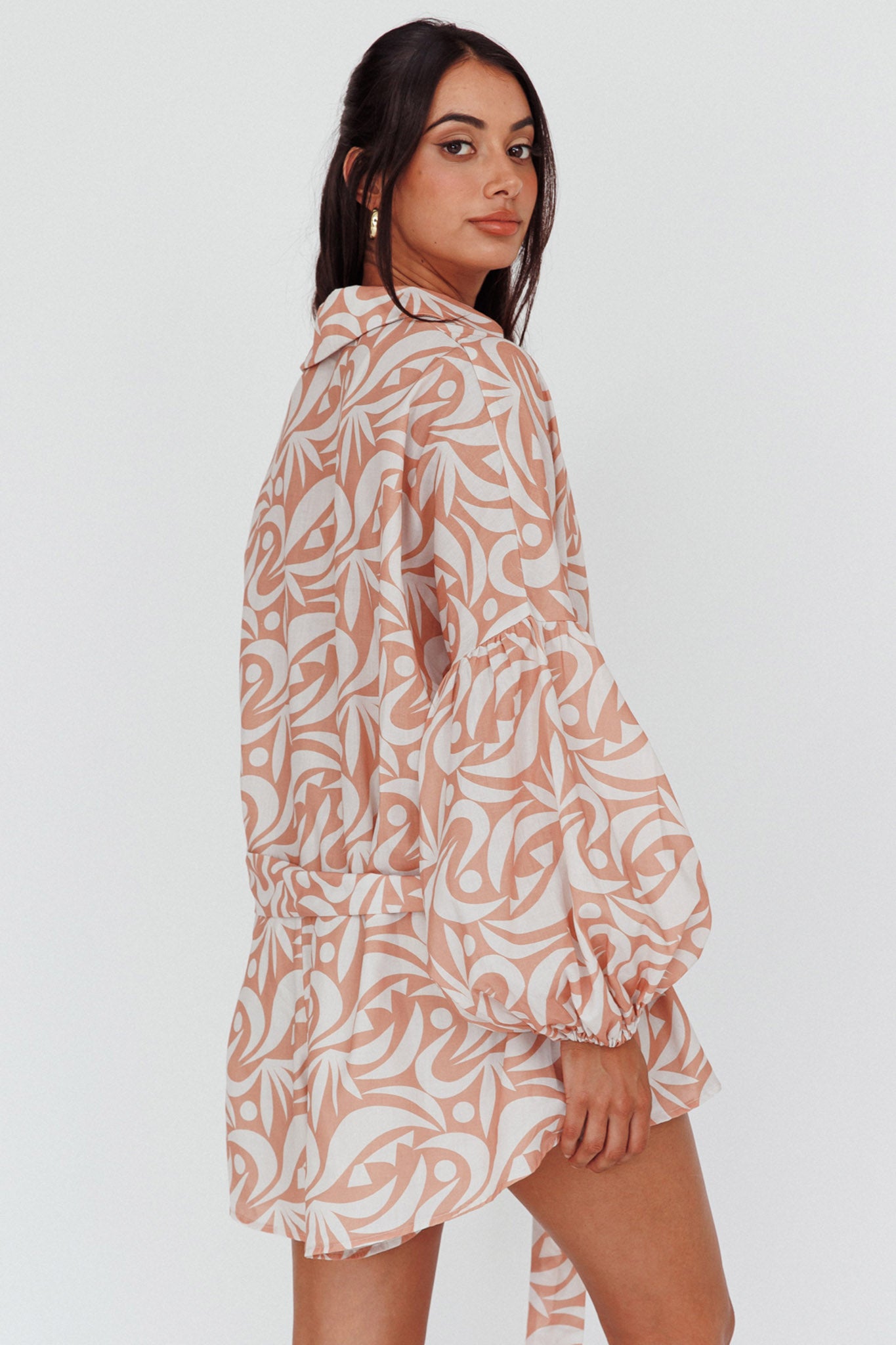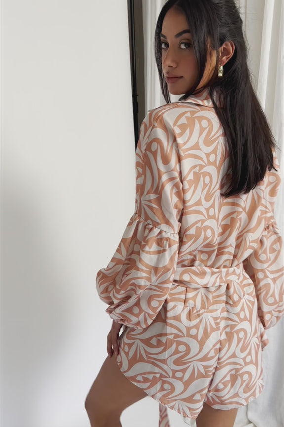 Daytona Beach Long Sleeve Shirt Romper Print Peach