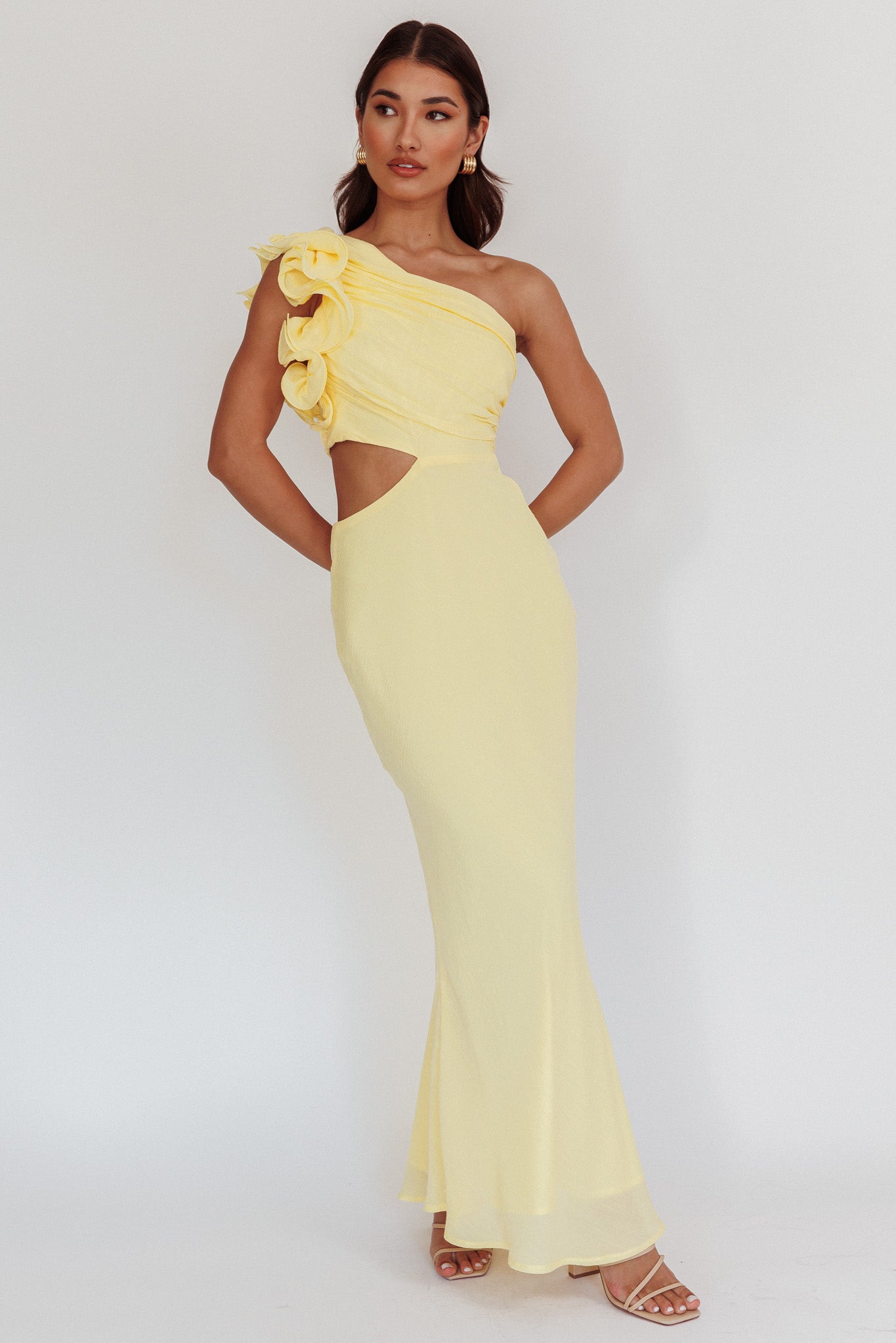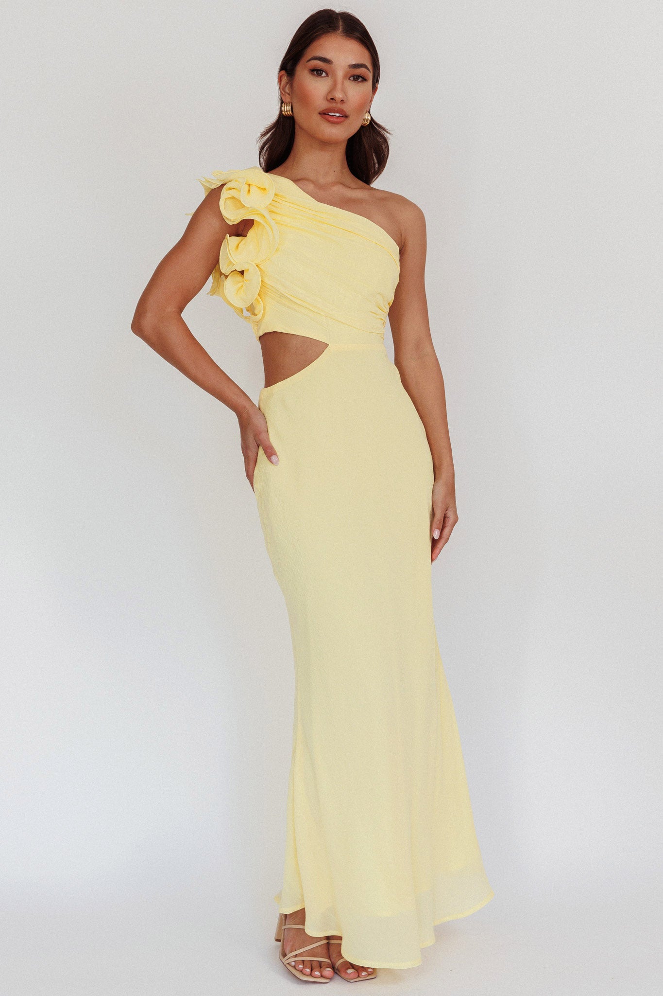 Deanna One-Shoulder Ruffle Maxi Dress Yellow
