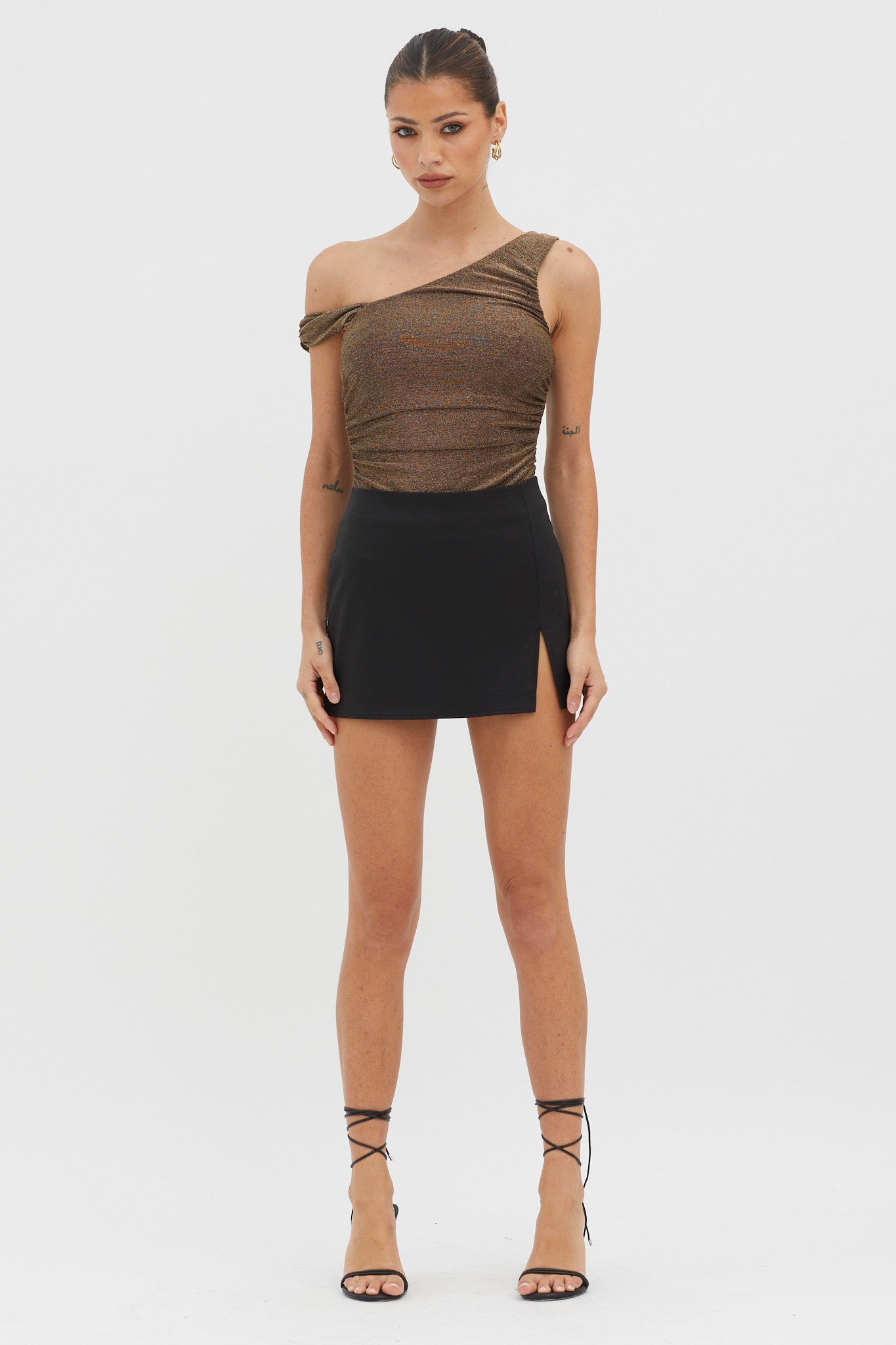 Deirdre Asymmetrical Strap Bodysuit Black/Gold