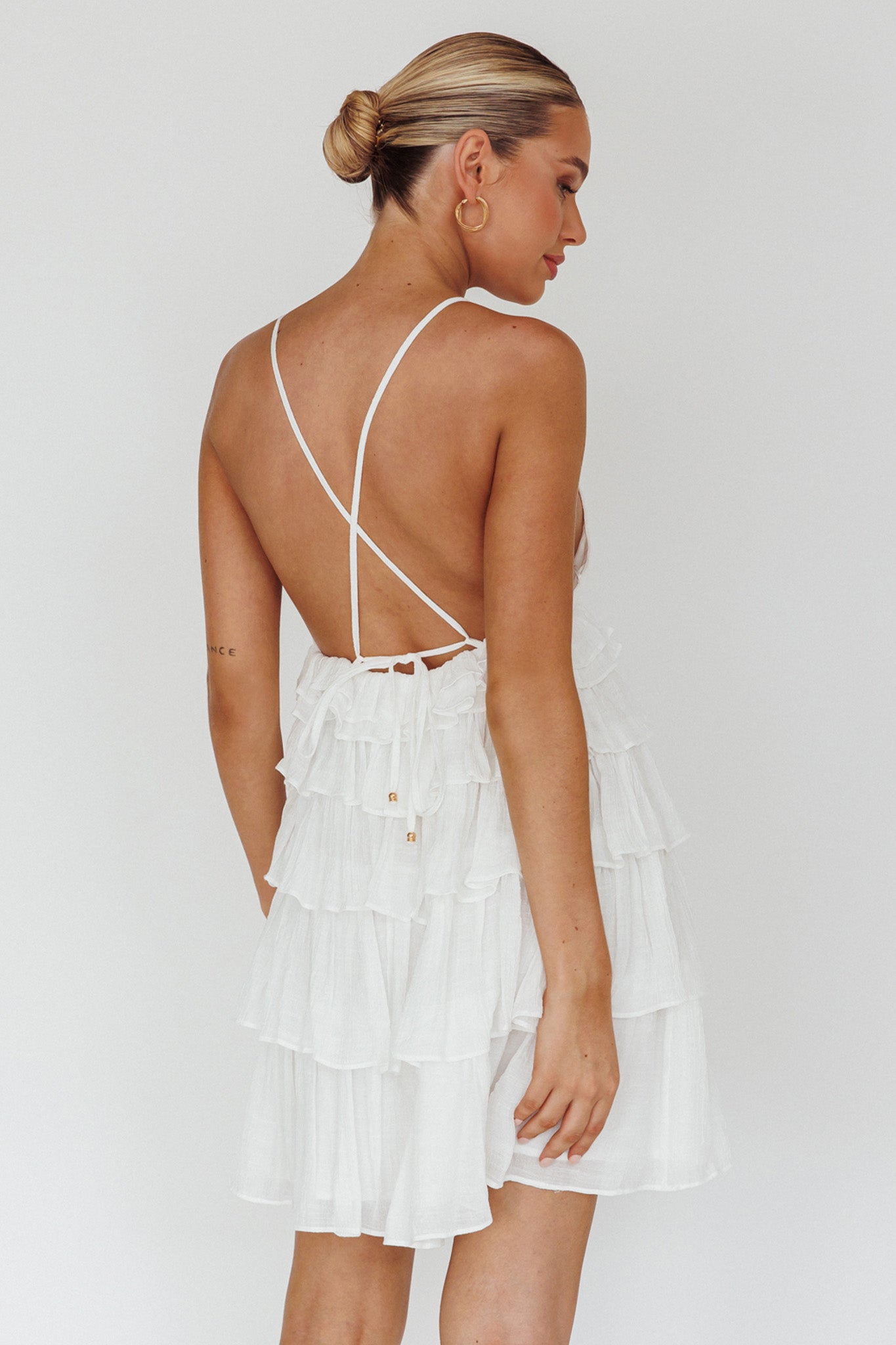 Dellia Tiered Ruffle Mini Dress Off White