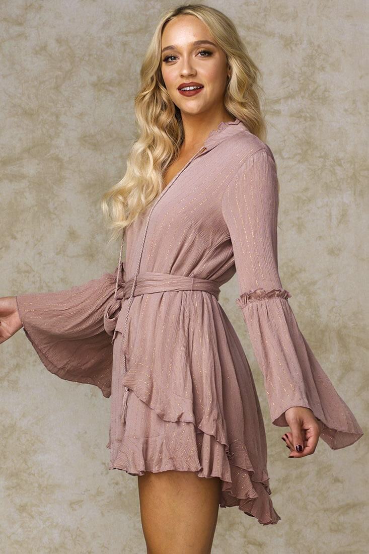 Dhillon Ruffled Waist Tie Mini Dress Mocha