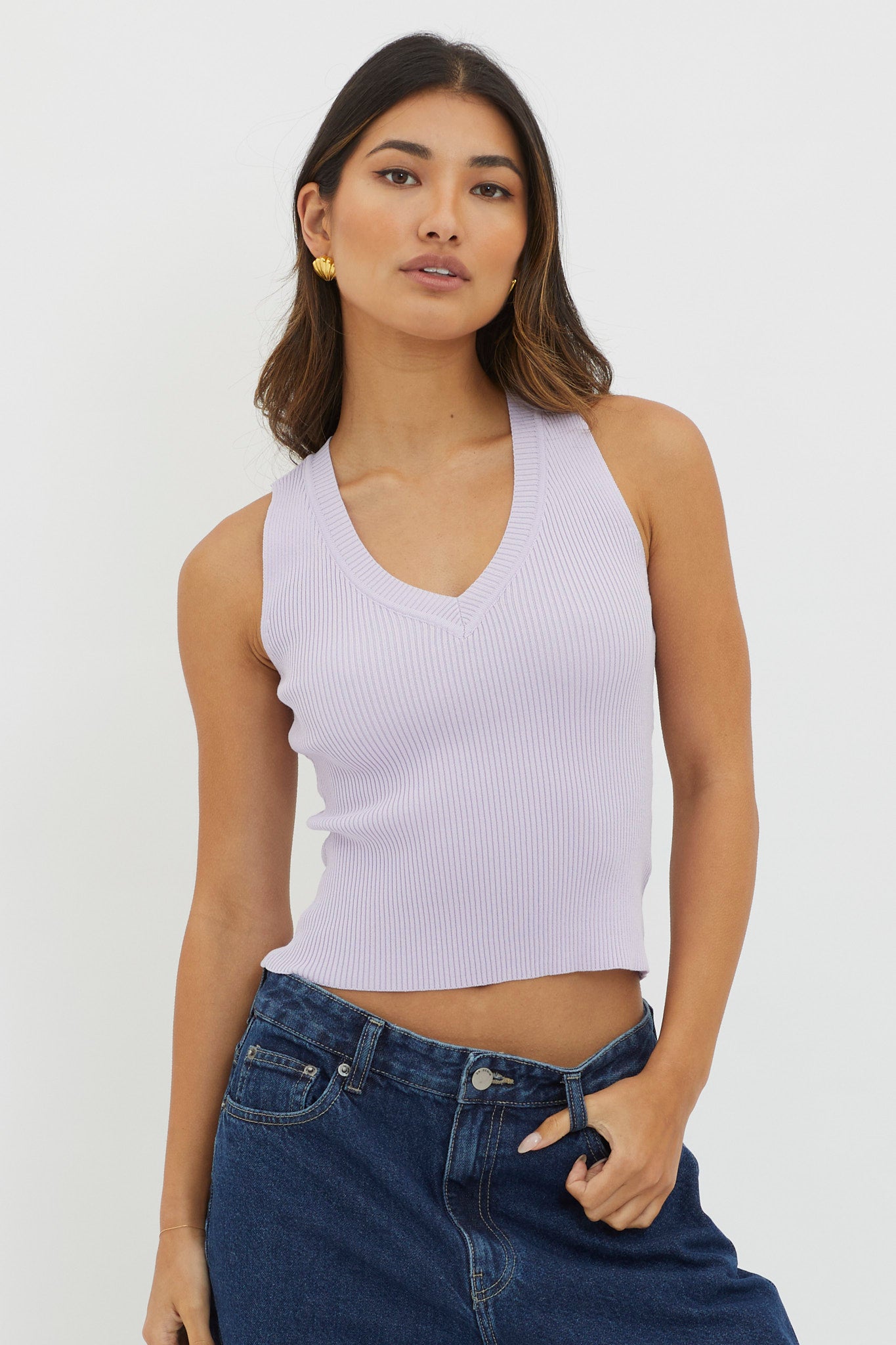 D'Lila V-Neck Ribbed Knit Top Lilac